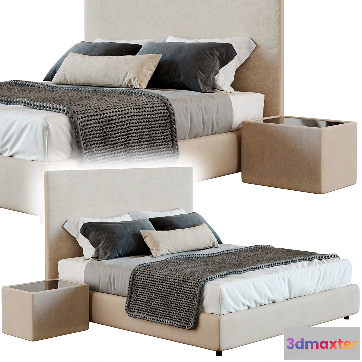 3D Models / Furniture / Bed / Beige Bed Linen