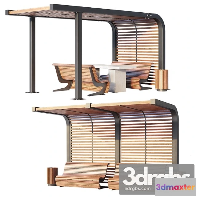 3D Models / Architecture / Urban Environment / Benches Pergola Urn 1