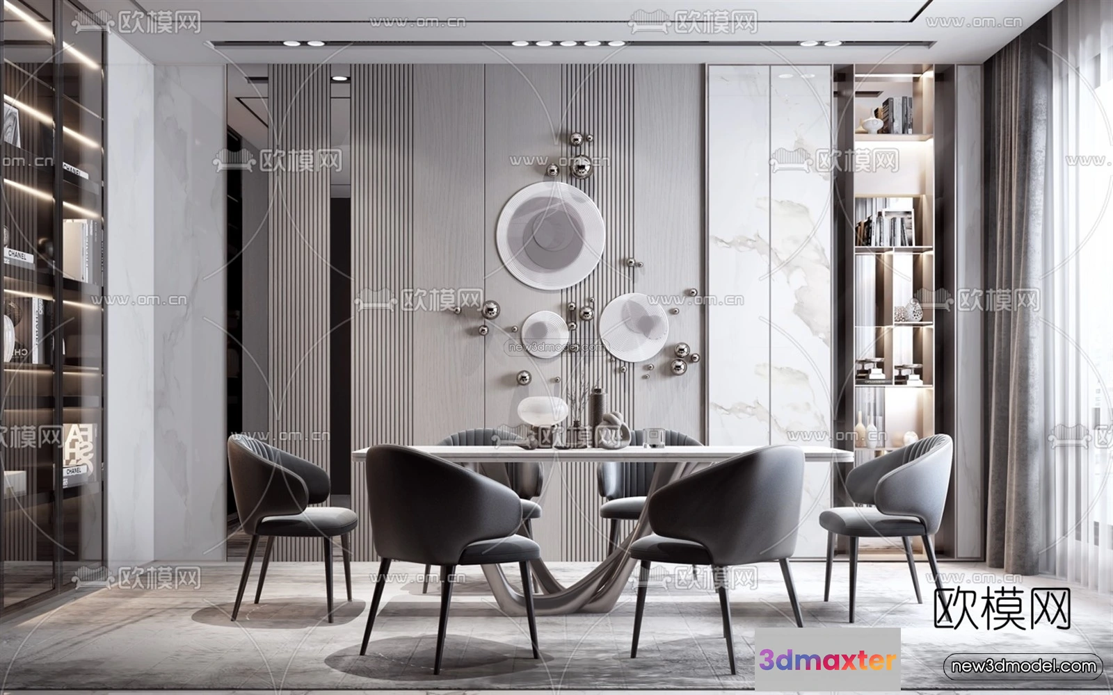 Black – White – Gray Colors Interior 3D Blocks – Dining Room 3D Scene – 133 – Dining Room 3D Model – VRAY