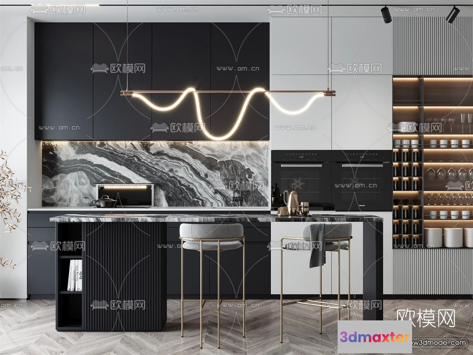 Black – White – Gray Colors Interior 3D Blocks – Kitchen 3D Scene – 214 – Kitchen 3D Model – VRAY