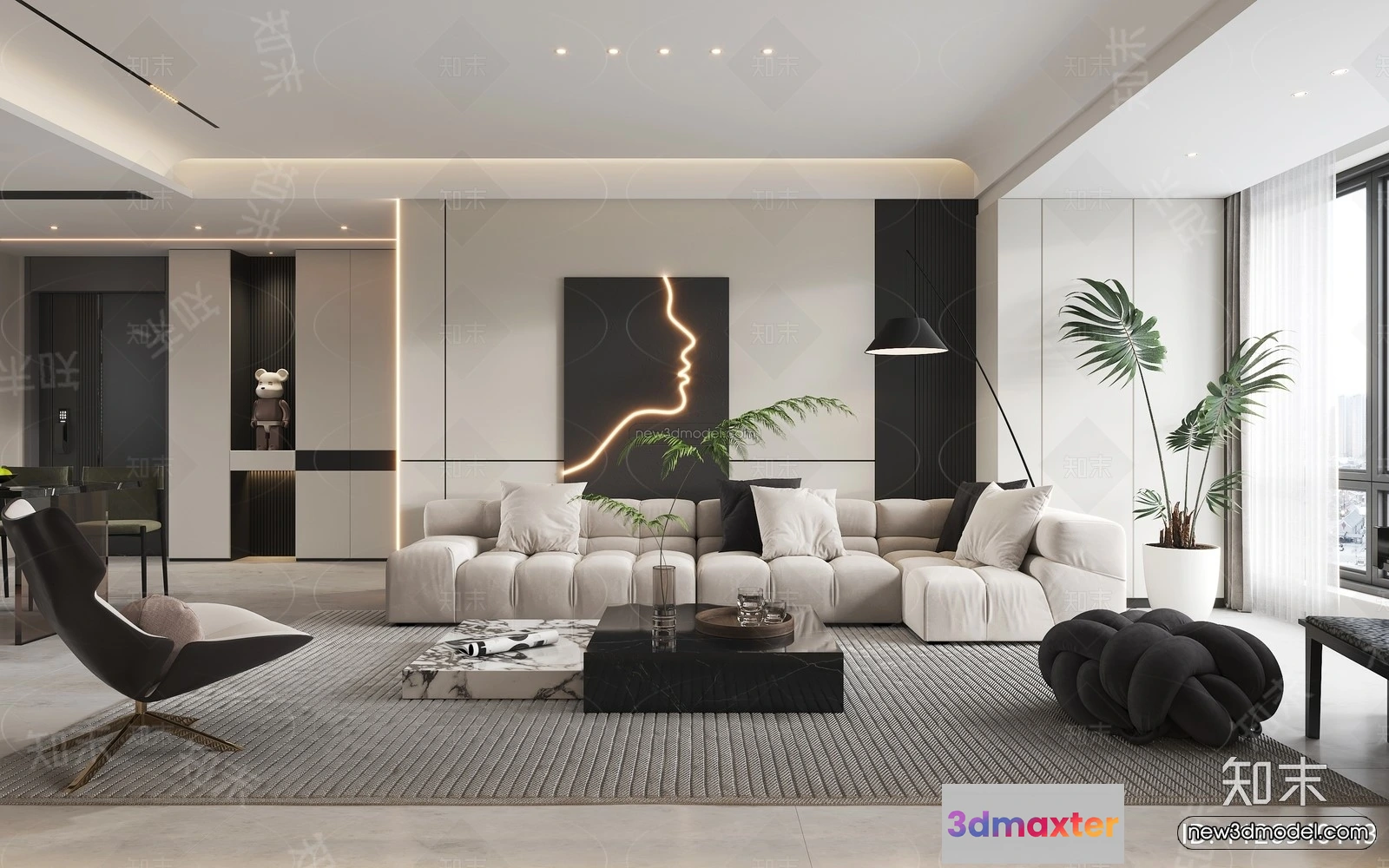 Black – White – Gray Colors Interior 3D Blocks – Living Room 3D Scene – 001 – Living room 3D Model – VRAY