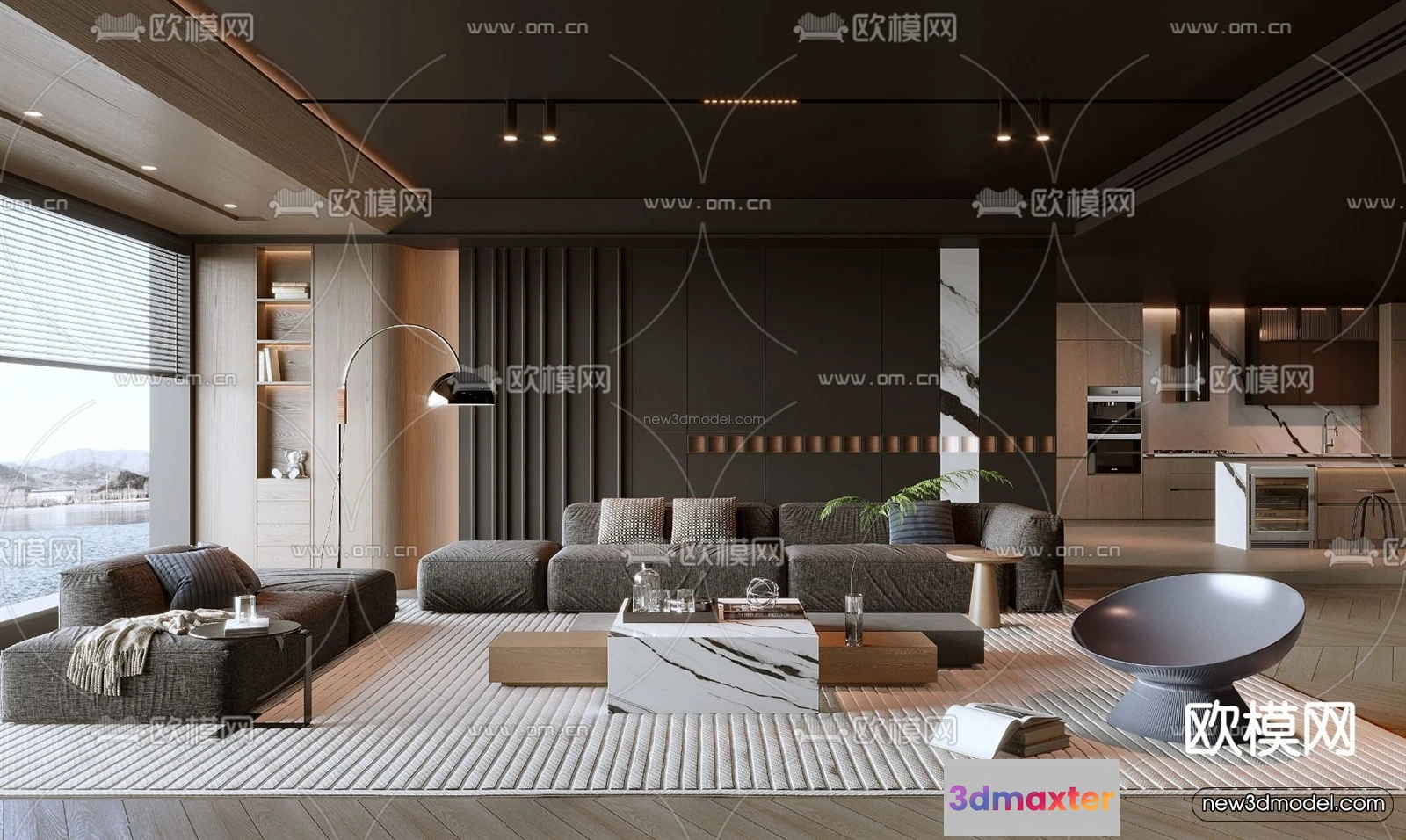Black – White – Gray Colors Interior 3D Blocks – Living Room 3D Scene – 061 – Living room 3D Model – VRAY