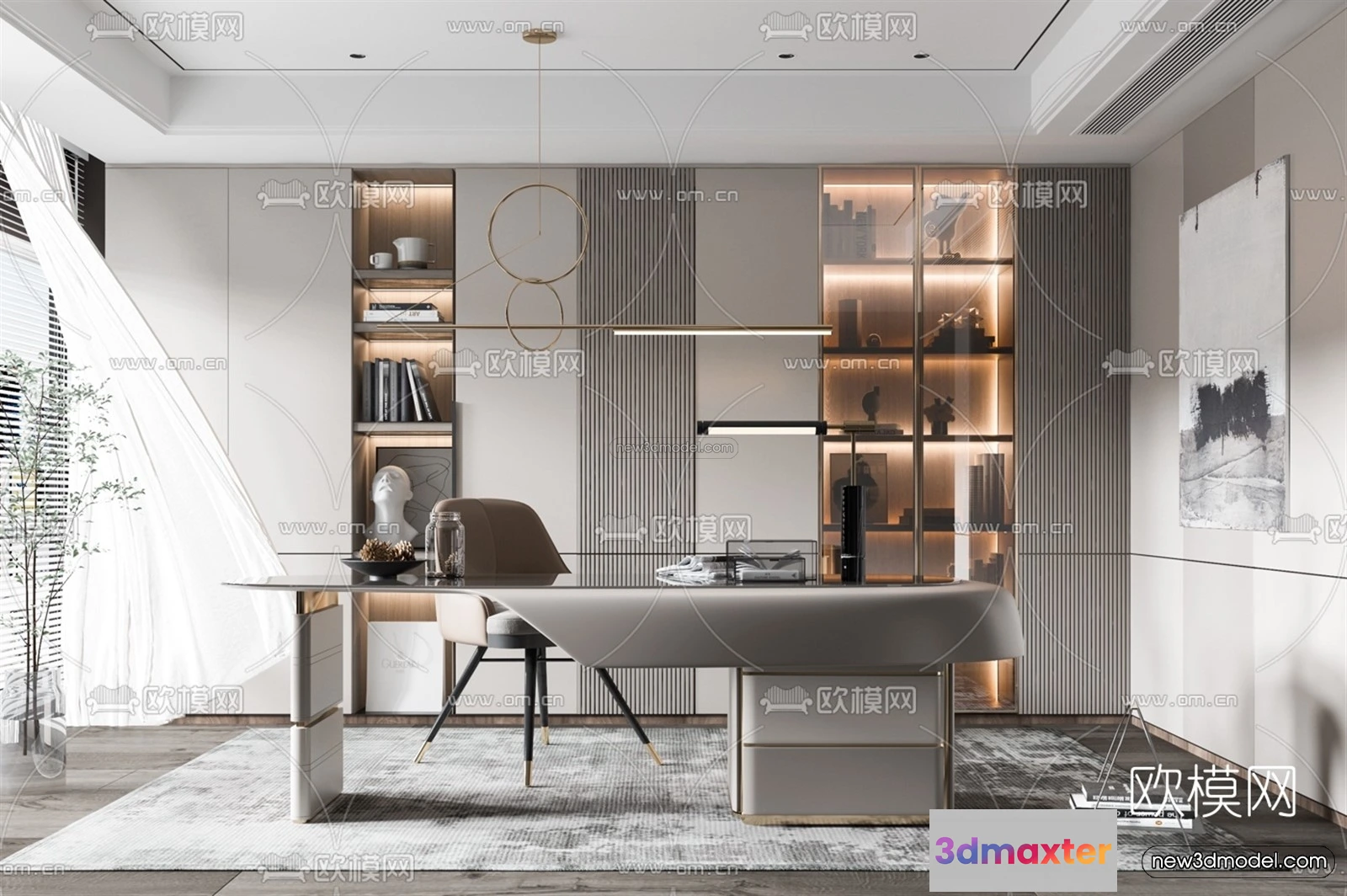 3D Models / 3D Scenes / Interior / Office Home / Black – White – Gray Colors Interior 3D Blocks – Study Room 3D Scene – 224 3D Max