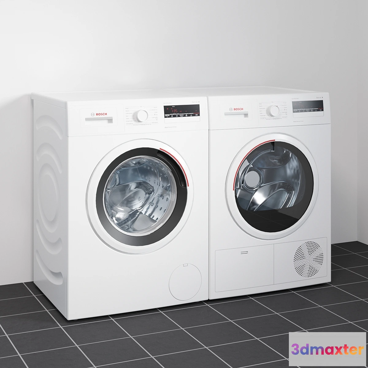 In the file there are 2 models stiralka and Bosch dryer. As used Corona render rendering. Model of technics BOSCH WTH85207SN BOSCH WAN242C7SN