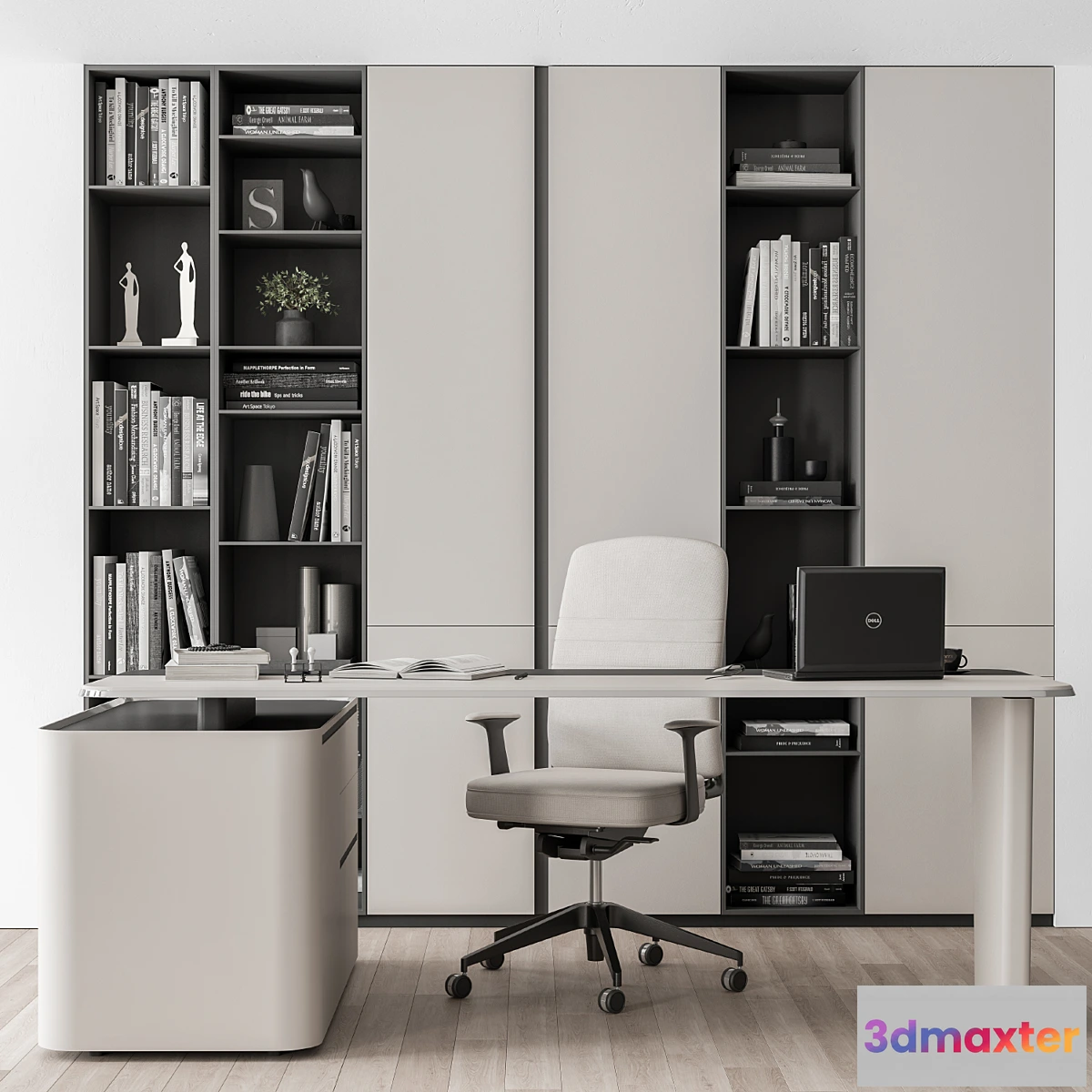 3D Models / Furniture / Office Furniture / Boss Desk with Library Black and White Table – Office Furniture 285 – No.2