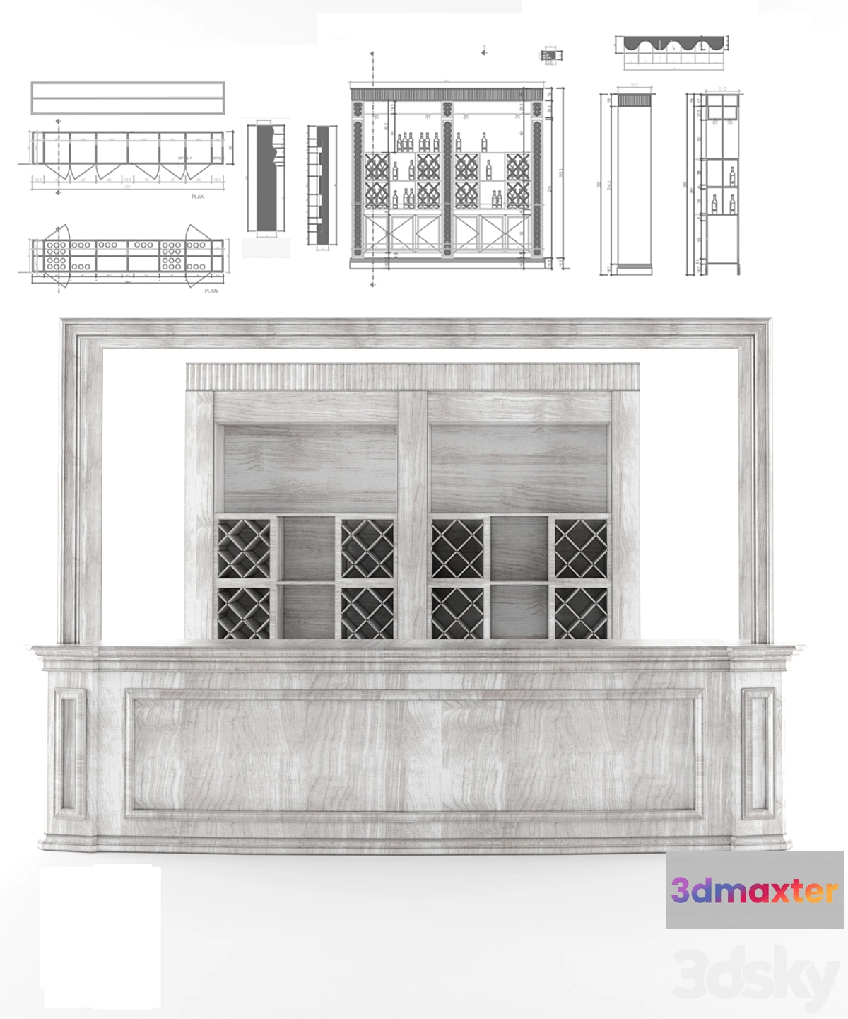 3D Models / Other Models / Restaurant / Breakfast bar + rack (cabinet) + drawing (dwg)