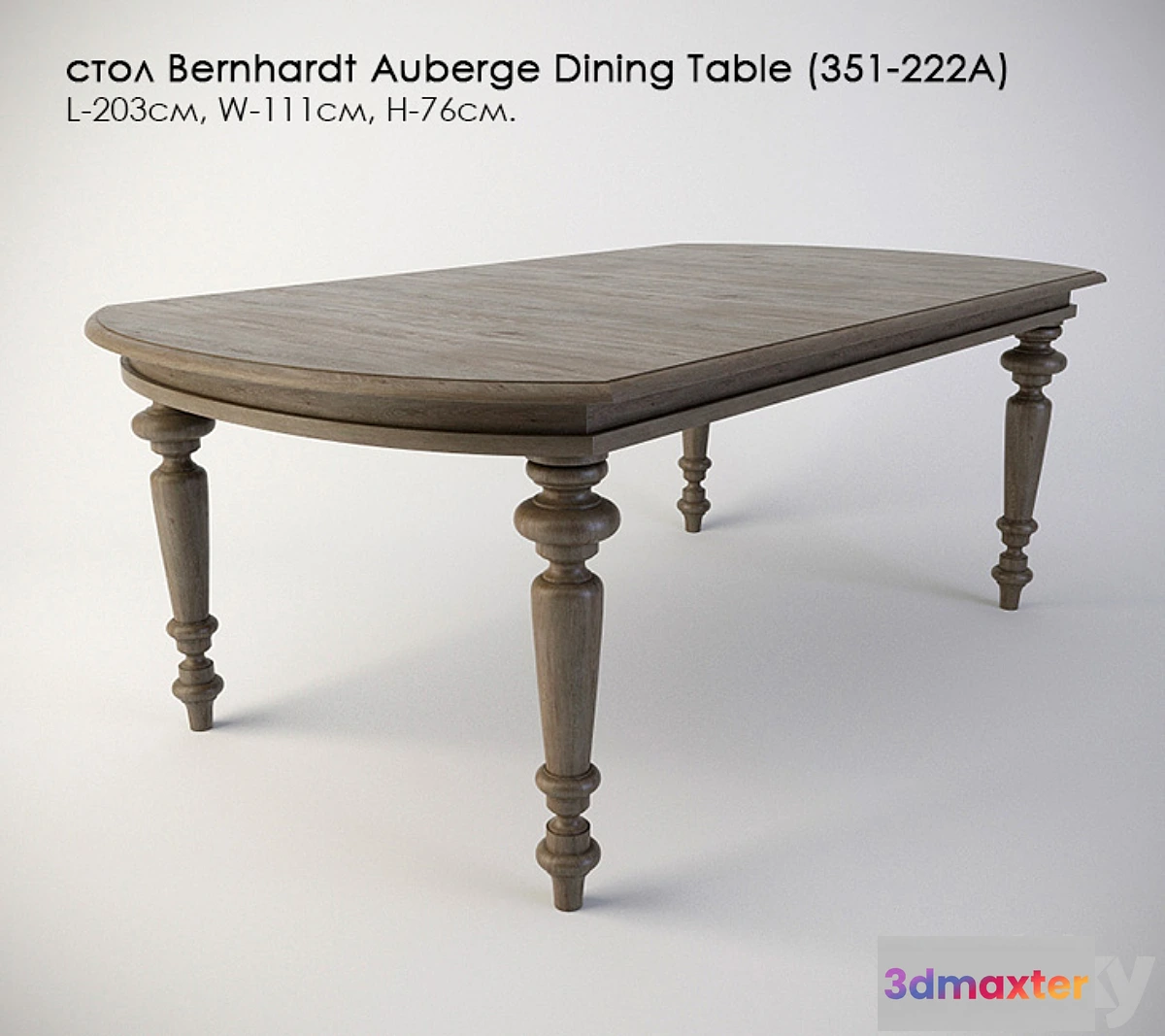 Buffet Bernhardt Auberge Dining Table (351-222A): L-203cm W-111sm H-76cm. 3ds max design 2014 Vray FBX.