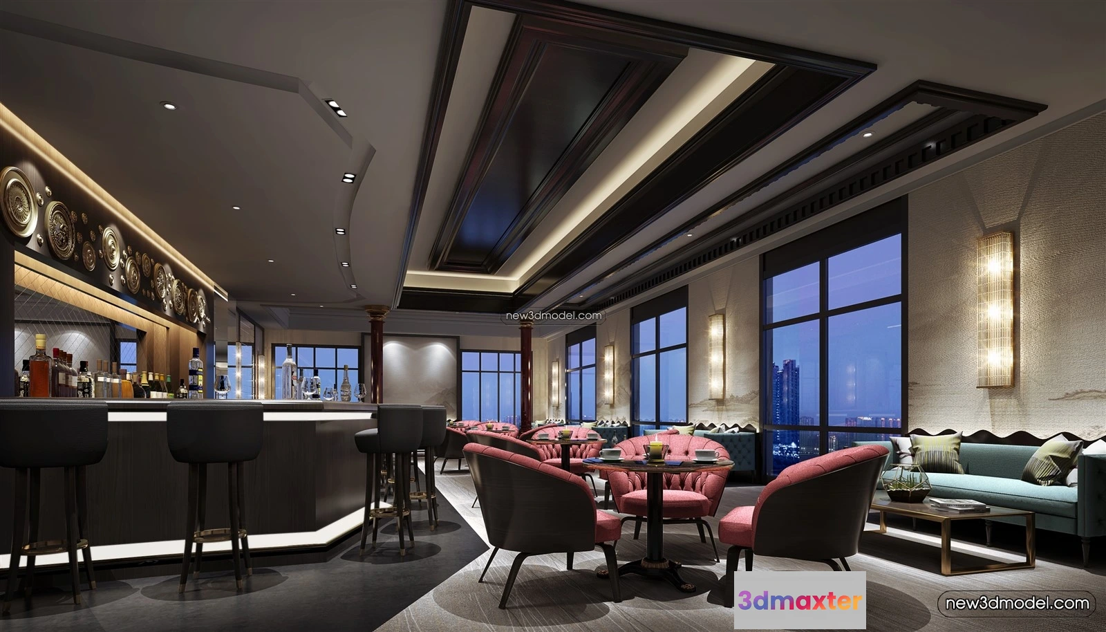 Buffet Restaurant of Hotels 3D Scenes – 3D Blocks – 009 – Hotel 3D Model – VRAY