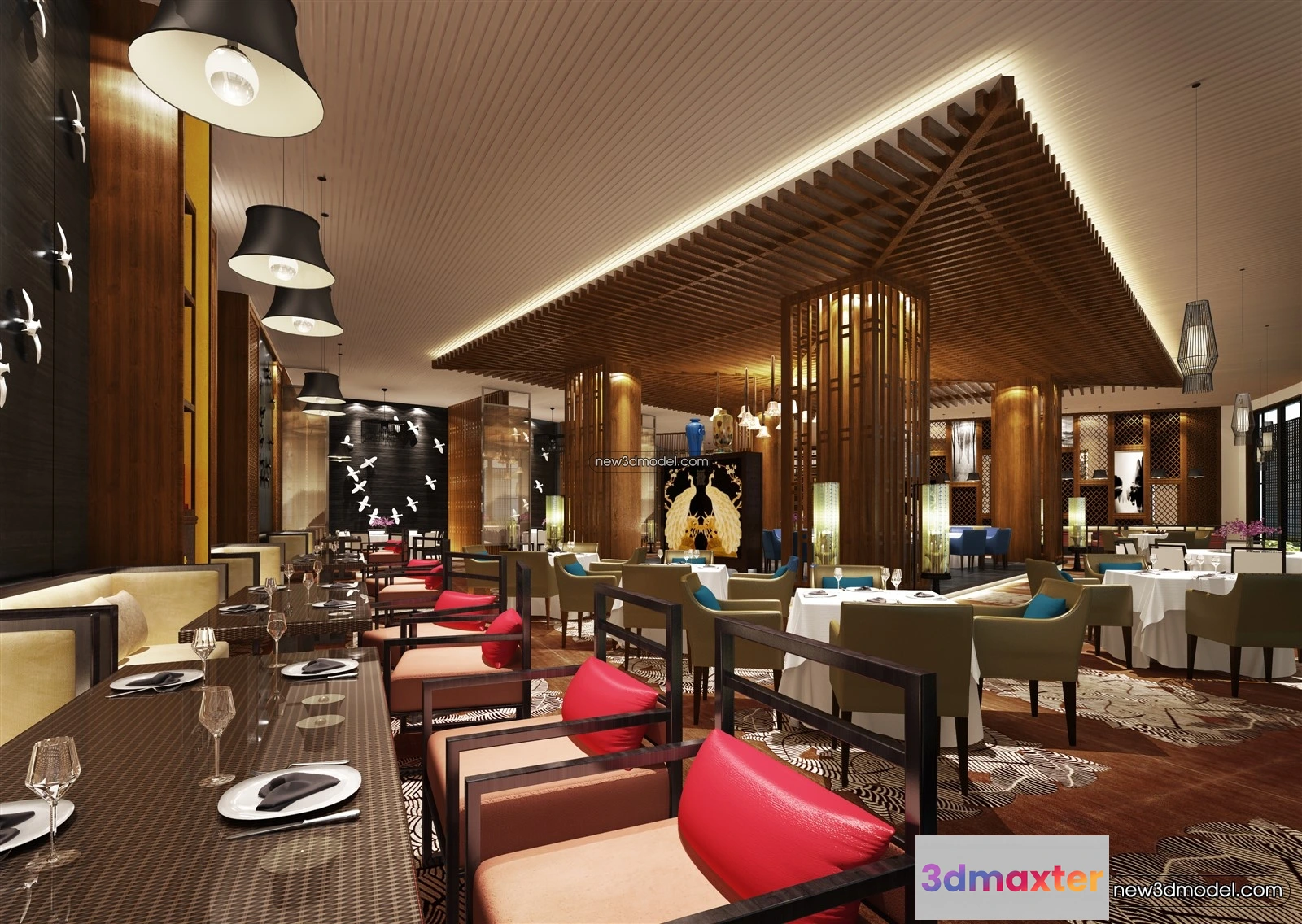 Buffet Restaurant of Hotels 3D Scenes – 3D Blocks – 026 – Hotel 3D Model – VRAY