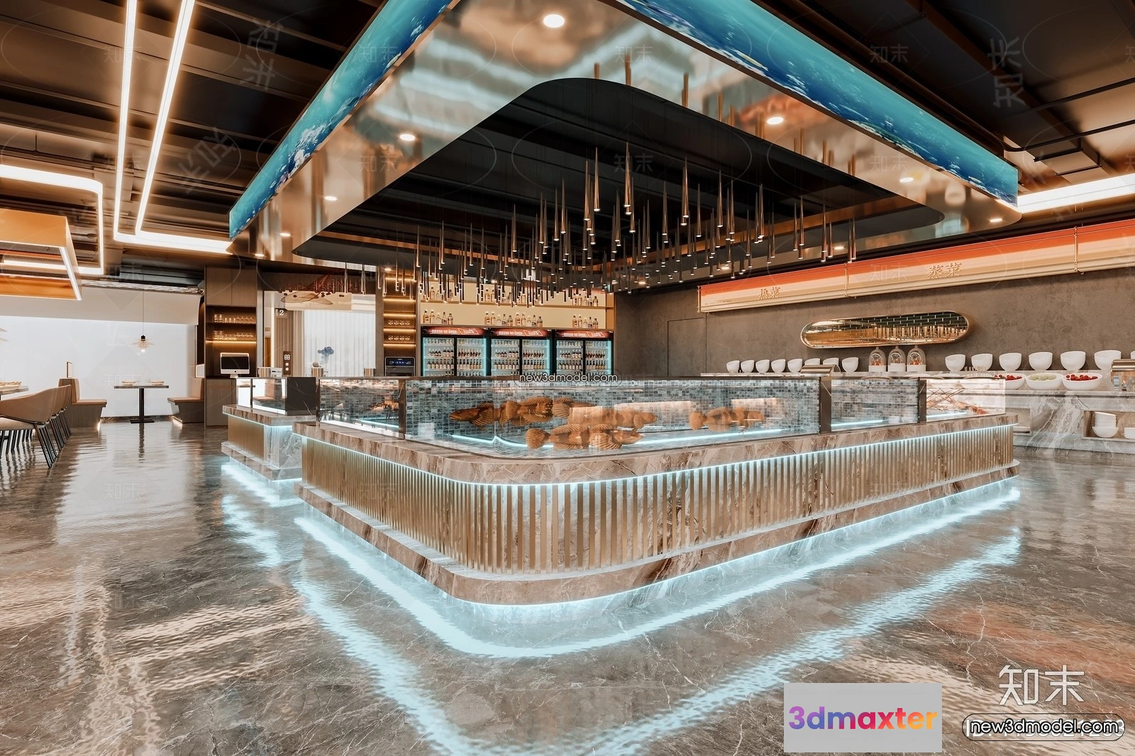 3D Models / 3D Scenes / Interior / Commercial Spaces / Buffet Restaurant of Hotels 3D Scenes – 3D Blocks – 059 3D Max