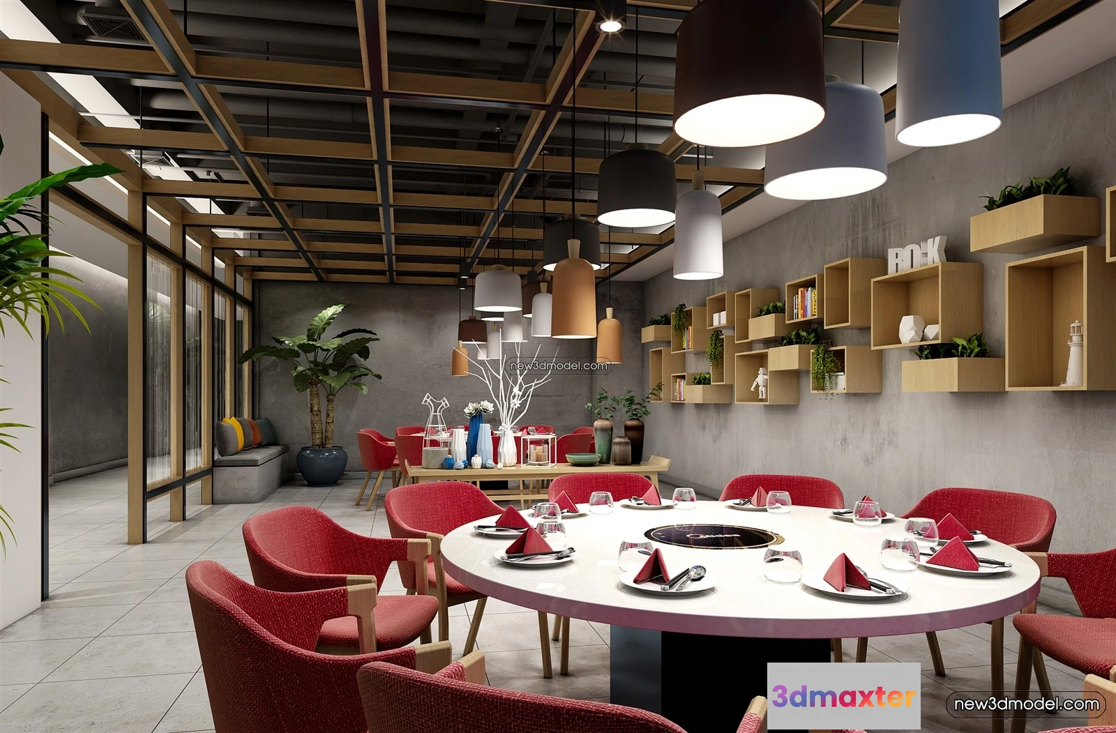 Buffet Restaurant of Hotels 3D Scenes – 3D Blocks – 112 – Hotel 3D Model – VRAY