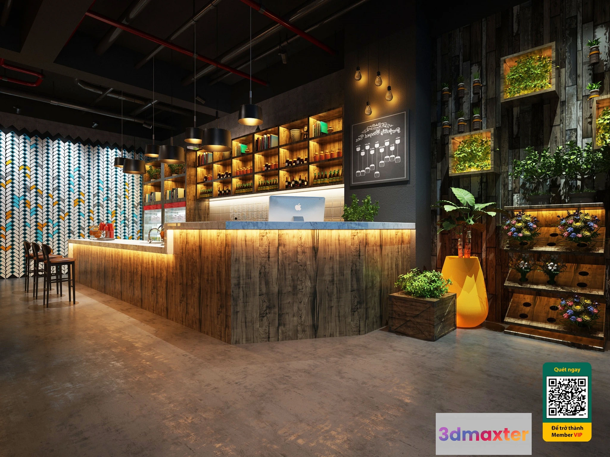 3D Models / 3D Scenes / Interior / Cafe milk tea shop 3D – 021 – 3638