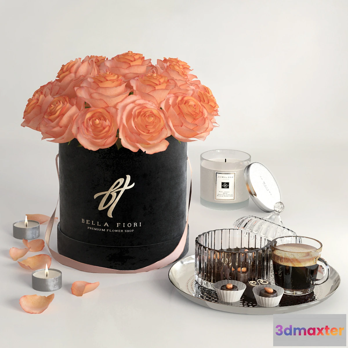 To enable smoothing of flowers and ribbons ungroup the group “roses_box” and activate TurboSmooth “rose” you do not need to apply anti-aliasing to the box.