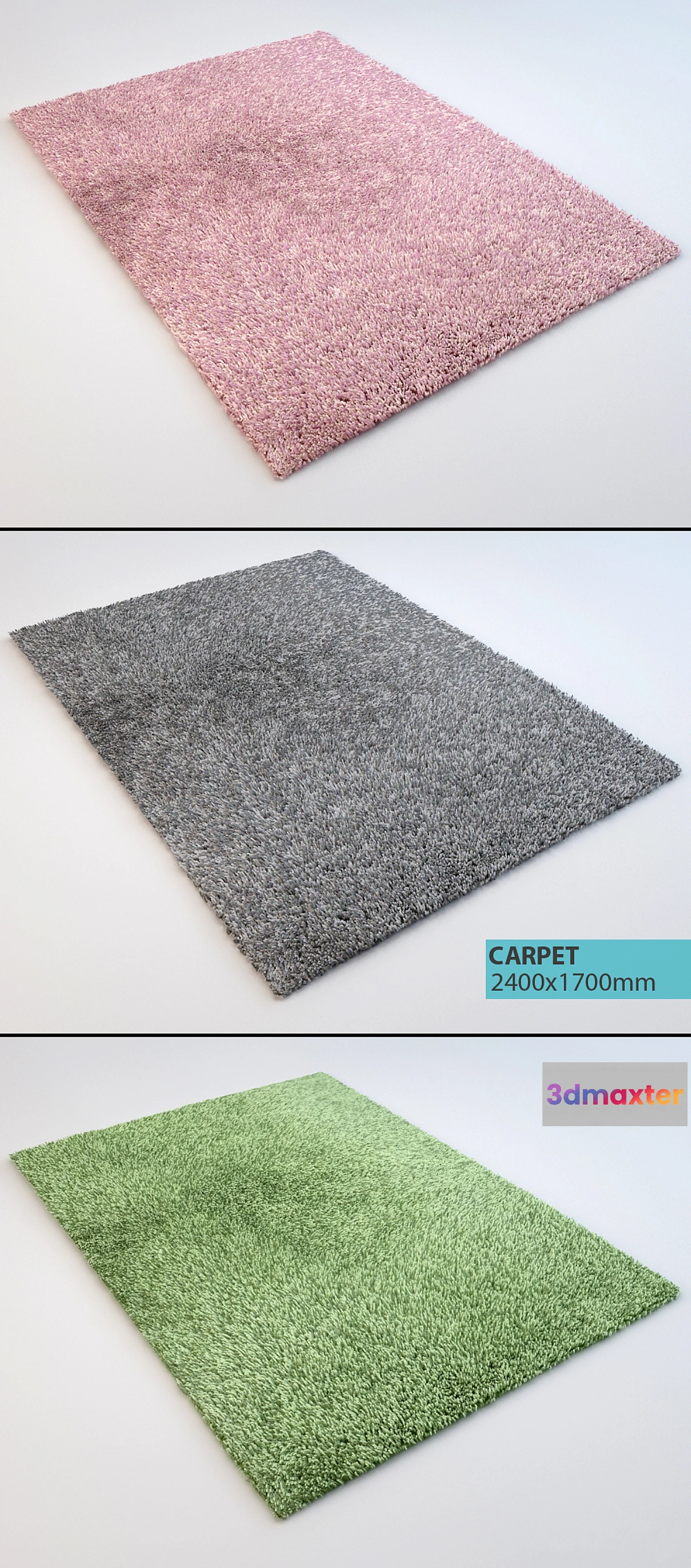 DESCRIPTION: Fur fluffy rugs – the colors: gray green and pink ATTENTION !!! To correctly display: System Units Setup – Millimeters Rendering> Effects> Hair and Fur> Hair> mr prim only format .MAX-files .max2011 (Hair and Fur) .max2014 (Hair and Fur) ACCELERATION renderer: reduce parameter Hair count up to 75000-40000