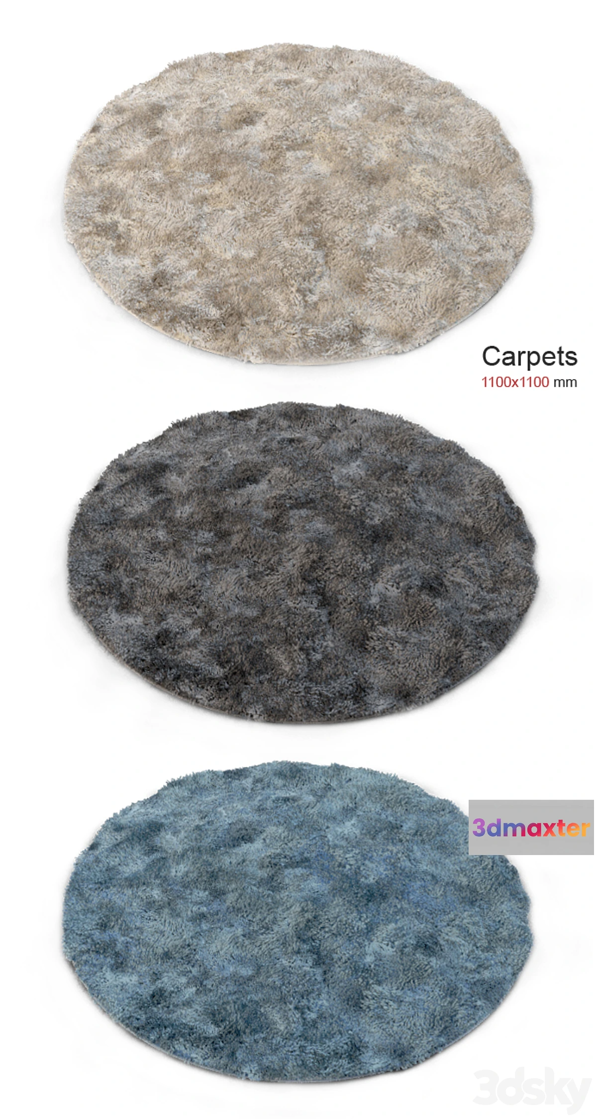 Fluffy carpets of different colors made geometry one meshom. Formats: .max 2011 .obj