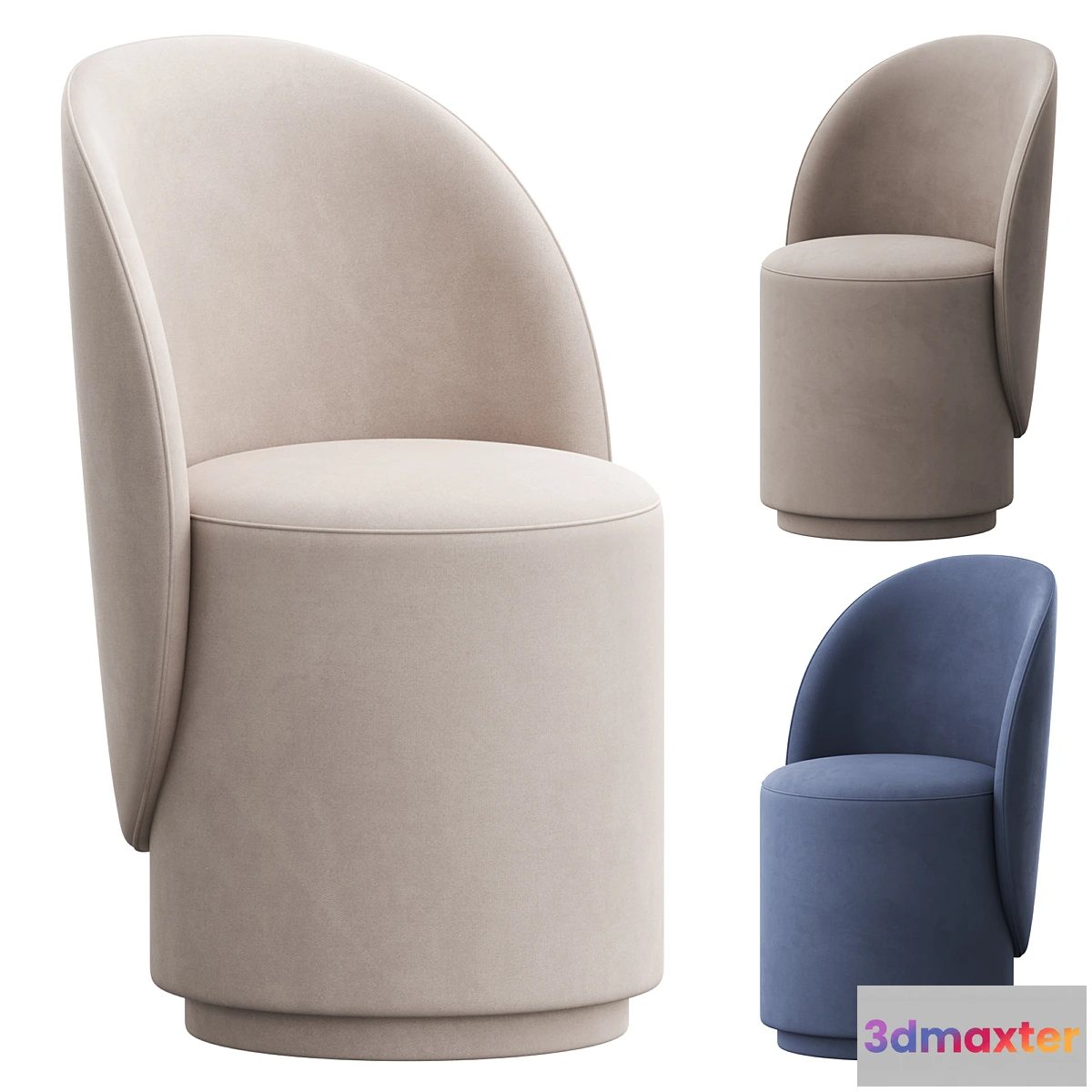 Zeyno chair model from Westwing in 3 colors.Turbosmooth is open 2 iterations on render.