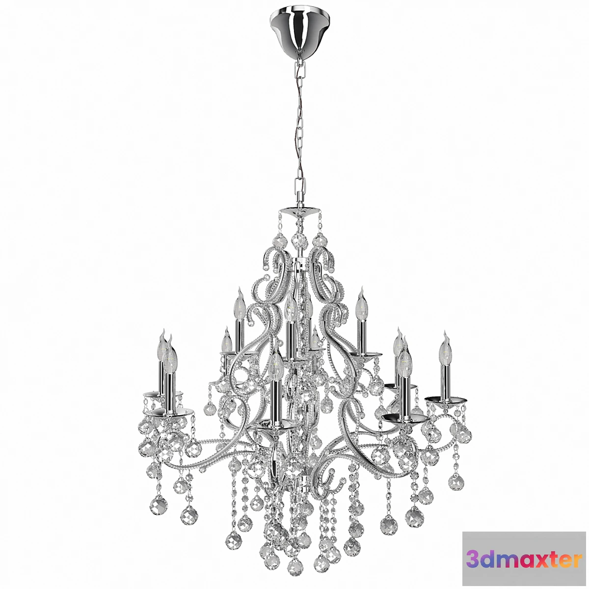 Information on the model: Manufacturer: Mirada de Cristal (Spain) Type of base: E14 Light Source: 8 + 4 x 40W Dimensions: D 880 H 1050 Color valves: chrome ceiling Material: Crystal Turbosmooth included only render iterations 2. You can use 1. The number of polygons: Turbosmooth 0 – 374.700 Turbosmooth 1 – 544.740 Turbosmooth 2 – 1219872