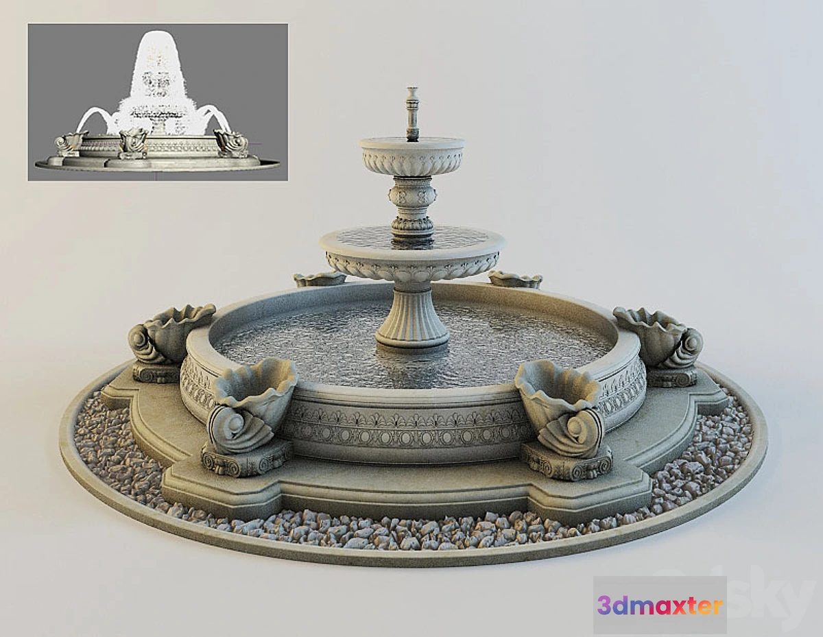 a High-Poly 3d Model with Particle Fountain Classic Fallen Water.