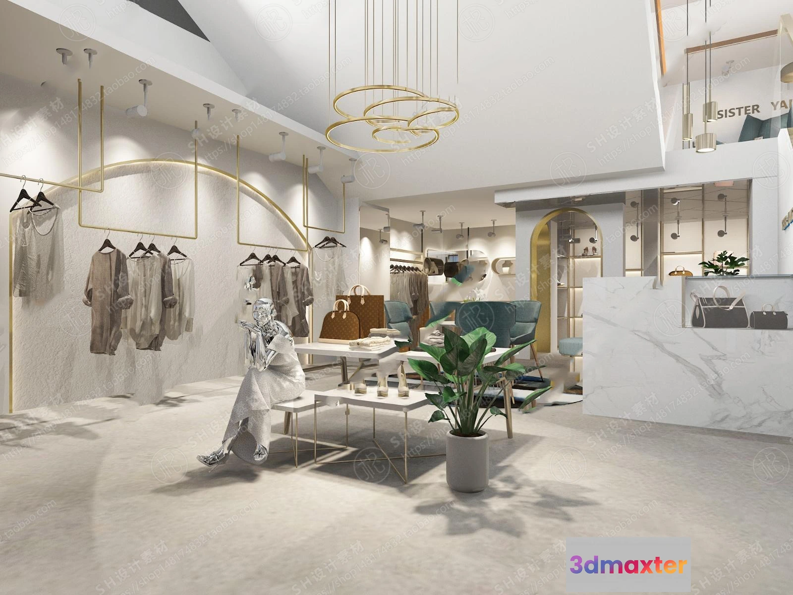 3D Models / 3D Scenes / Other Home Spaces / CLOTHING STORE 3D SCENES – VRAY RENDER – 02