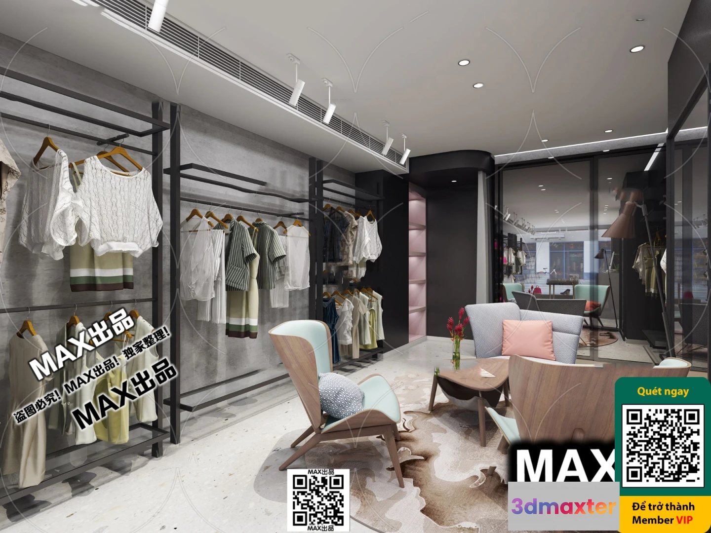 3D Models / 3D Scenes / Other Home Spaces / CLOTHING STORE – VRAY / CORONA – 3D MODEL – 6302