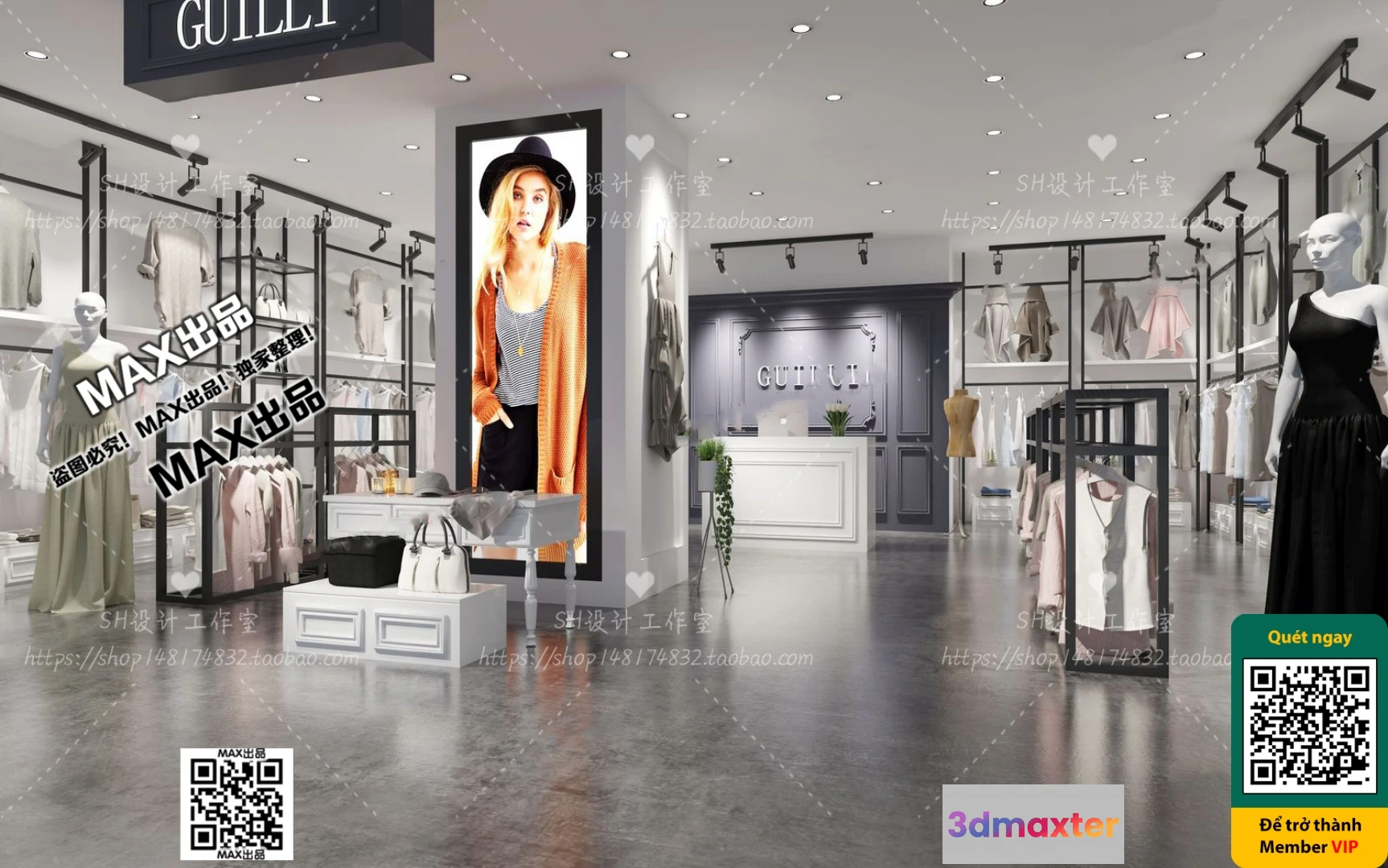 3D Models / 3D Scenes / Other Home Spaces / CLOTHING STORE – VRAY / CORONA – 3D MODEL – 6383