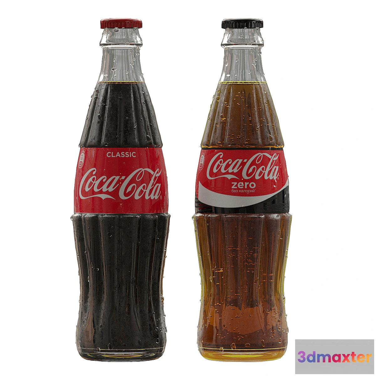 Glass bottles of Coca Cola Classic and Coca Cola Zero 0.5LPoly: 198.358 (Vray 3.60.03)