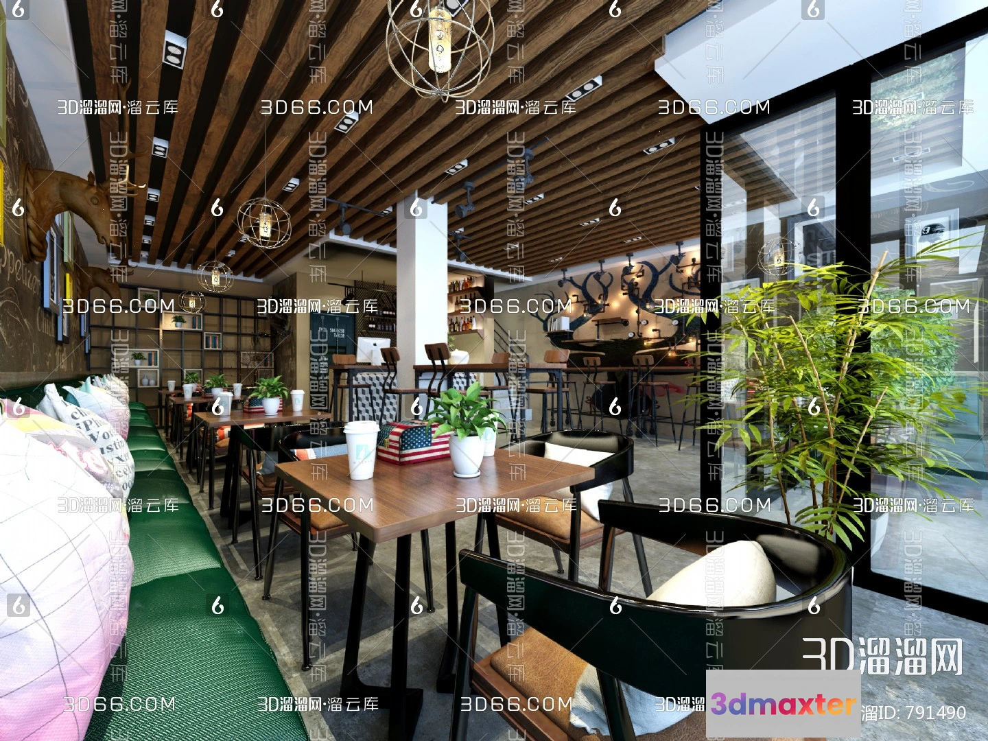 3D Models / 3D Scenes / Other Home Spaces / Coffee Shop 3D Scenes – 0423