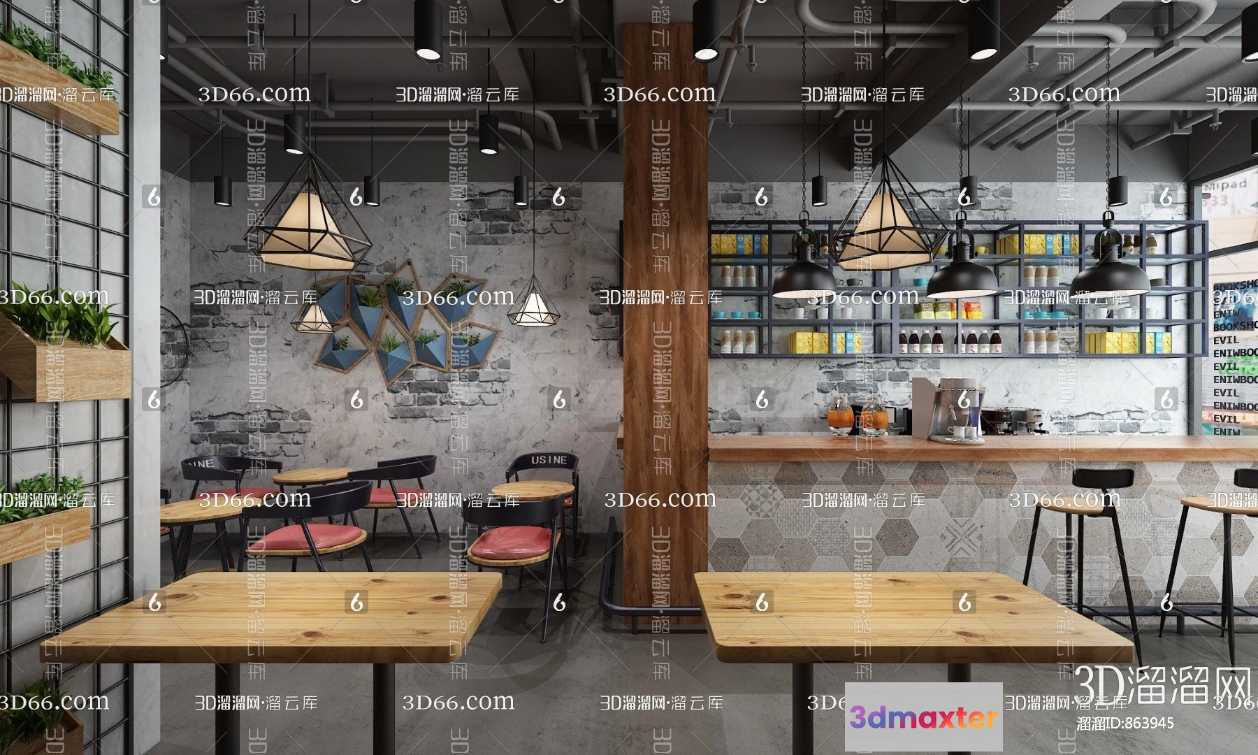 3D Models / 3D Scenes / Other Home Spaces / Coffee Shop 3D Scenes – 0437