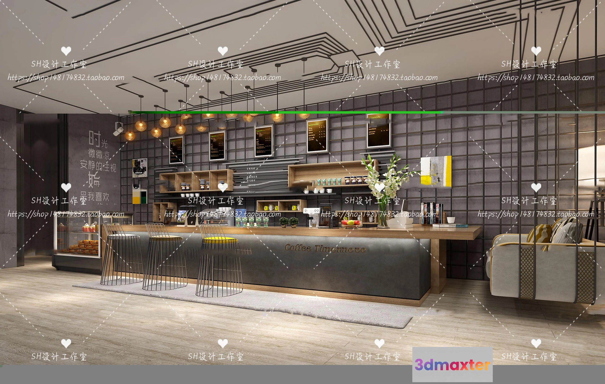 - Name: COFFEE SHOP 3D SCENES – VRAY RENDER – 100