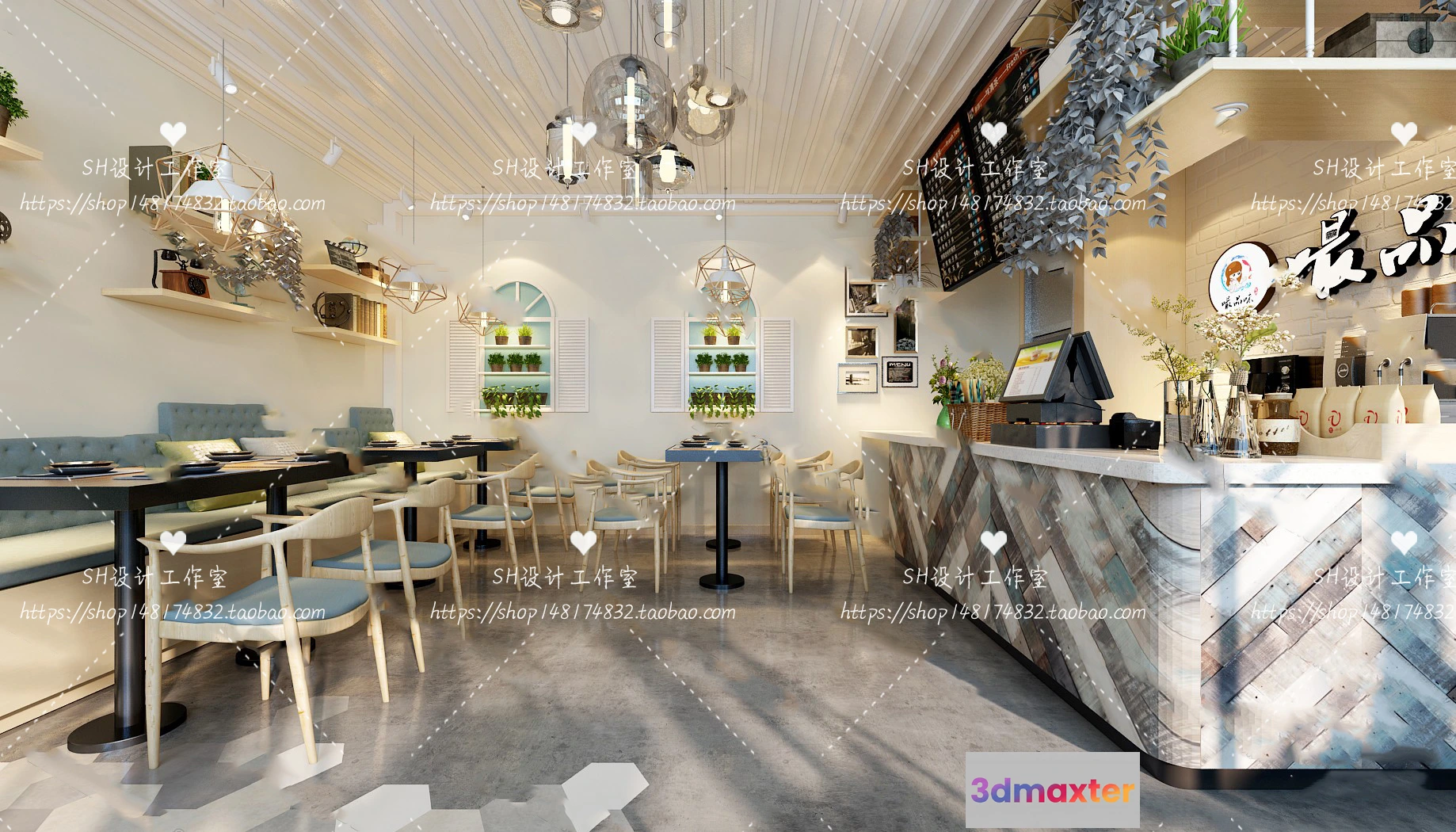 3D Models / 3D Scenes / Other Home Spaces / COFFEE SHOP 3D SCENES – VRAY RENDER – 124