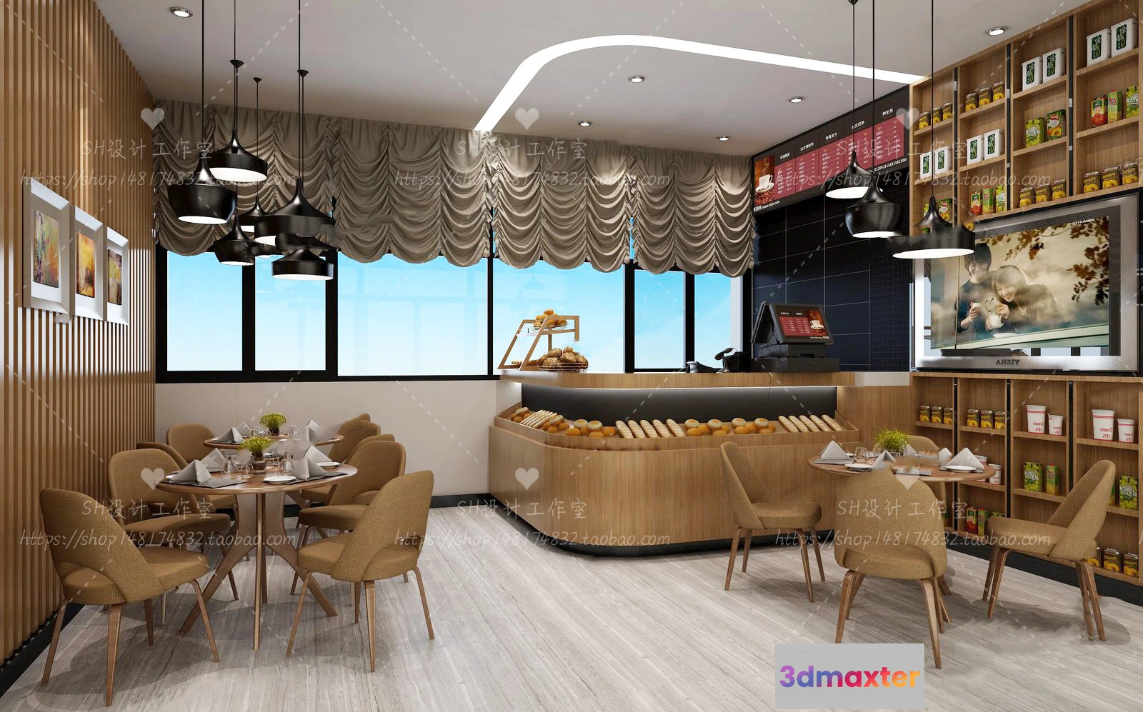 3D Models / 3D Scenes / Other Home Spaces / COFFEE SHOP 3D SCENES – VRAY RENDER – 61