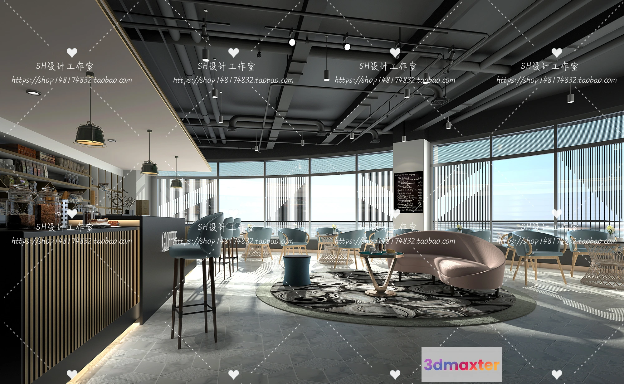 3D Models / 3D Scenes / Other Home Spaces / COFFEE SHOP 3D SCENES – VRAY RENDER – 92