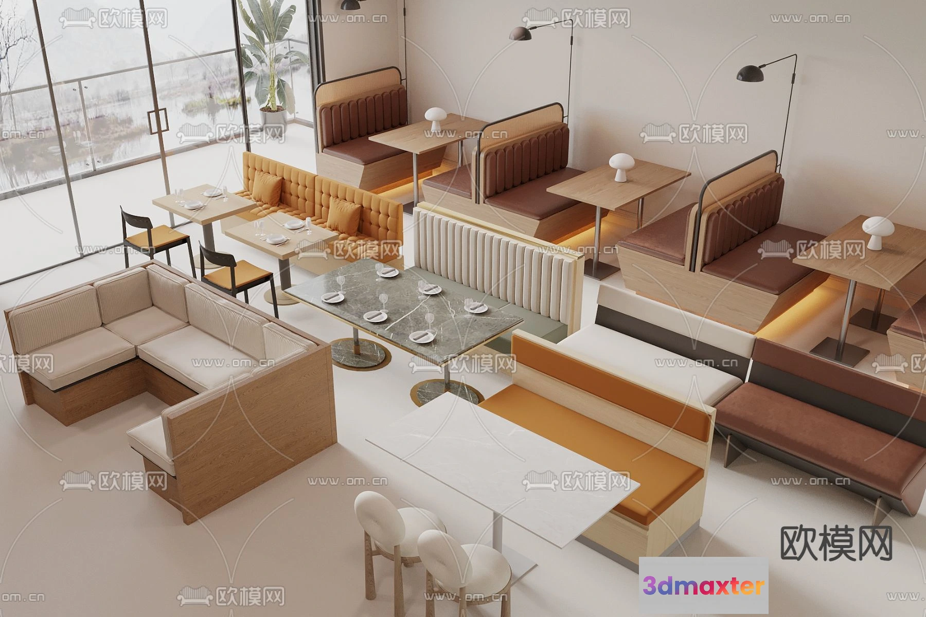 3D Models / 3D Scenes / Interior / Commercial Spaces / Coffee Table and Armchair Sets – 3D Models – Cafe Interior 3D Scenes – 022 – VRAY Render 3D Max