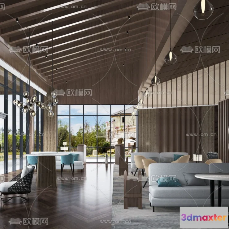3D Models / 3D Scenes / Interior / Commercial Spaces / Coffee Table and Armchair Sets – 3D Models – Cafe Interior 3D Scenes – 089 – VRAY Render 3D Max