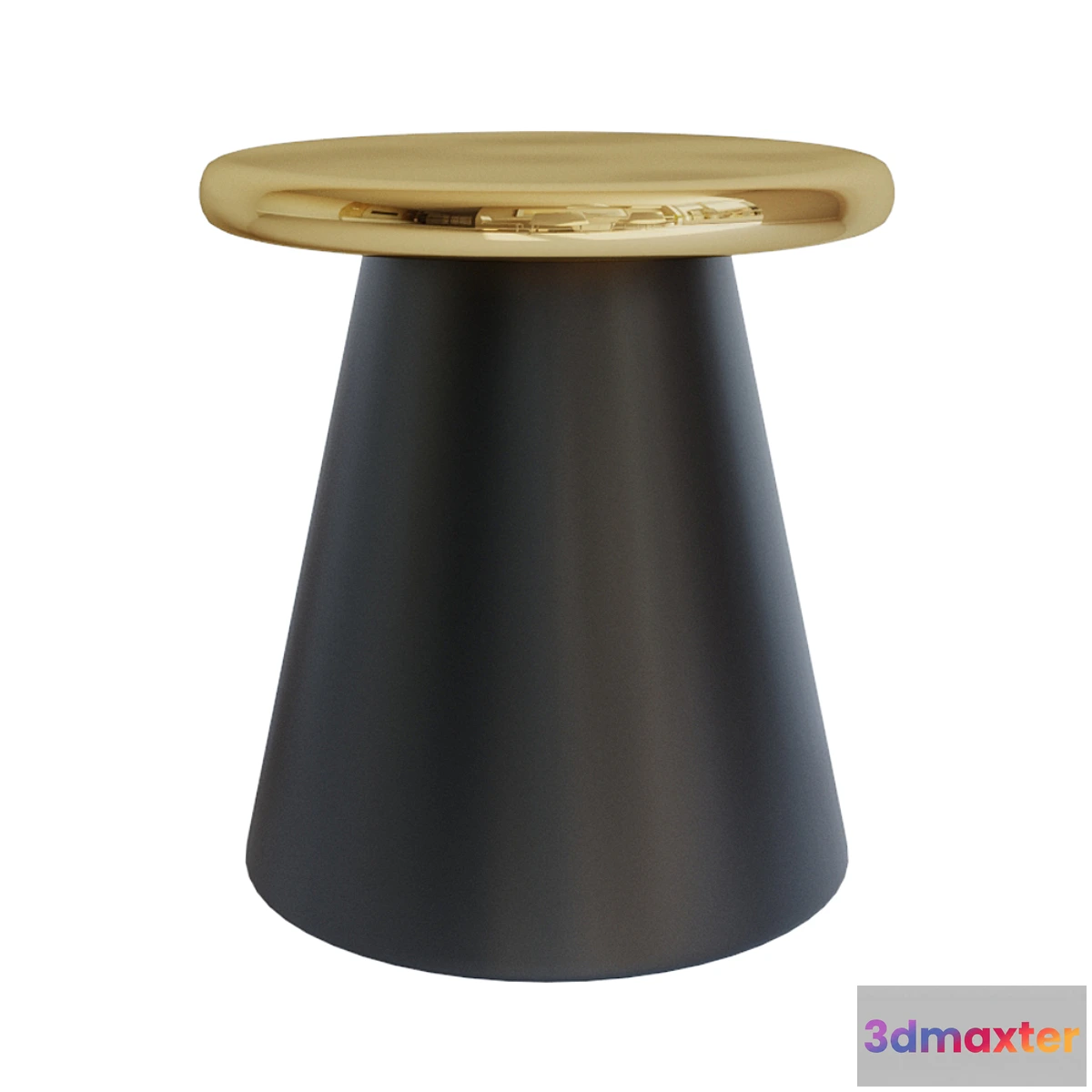 Stylish and compact coffee table PHIL – combines reliability and creative design. Round tabletop made of metal in brass finish. The base of the original form is made of metal painted with reliable paint in matt black.