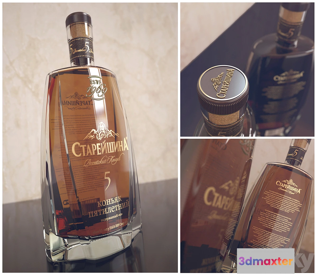 Bottle of brandy “elder” in the archive 3Dmax 2014-2011 and FBX (separately saved the file with materials)