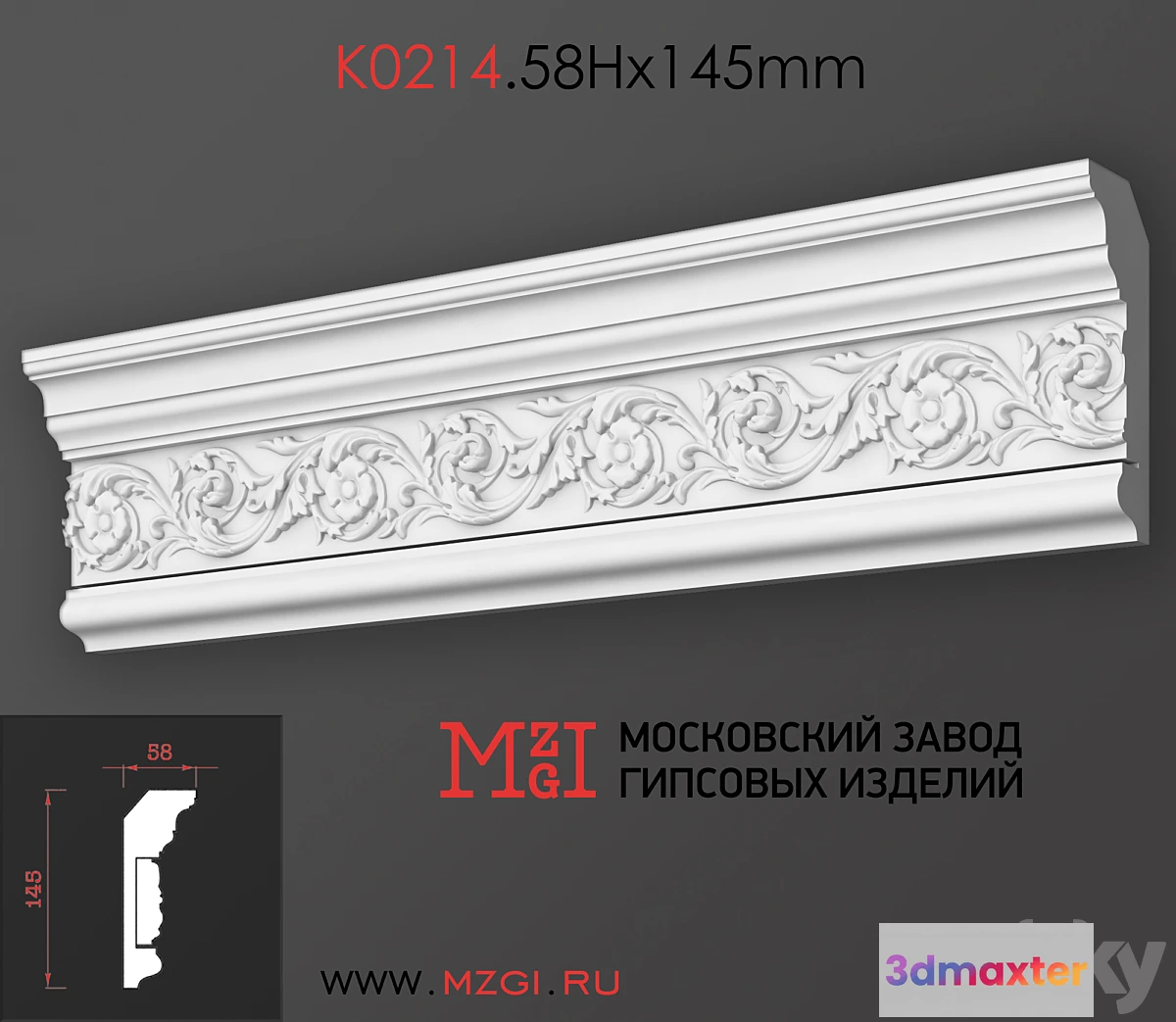 Cornices patterned plaster moldings K0214.58Nx145mm 3D Max