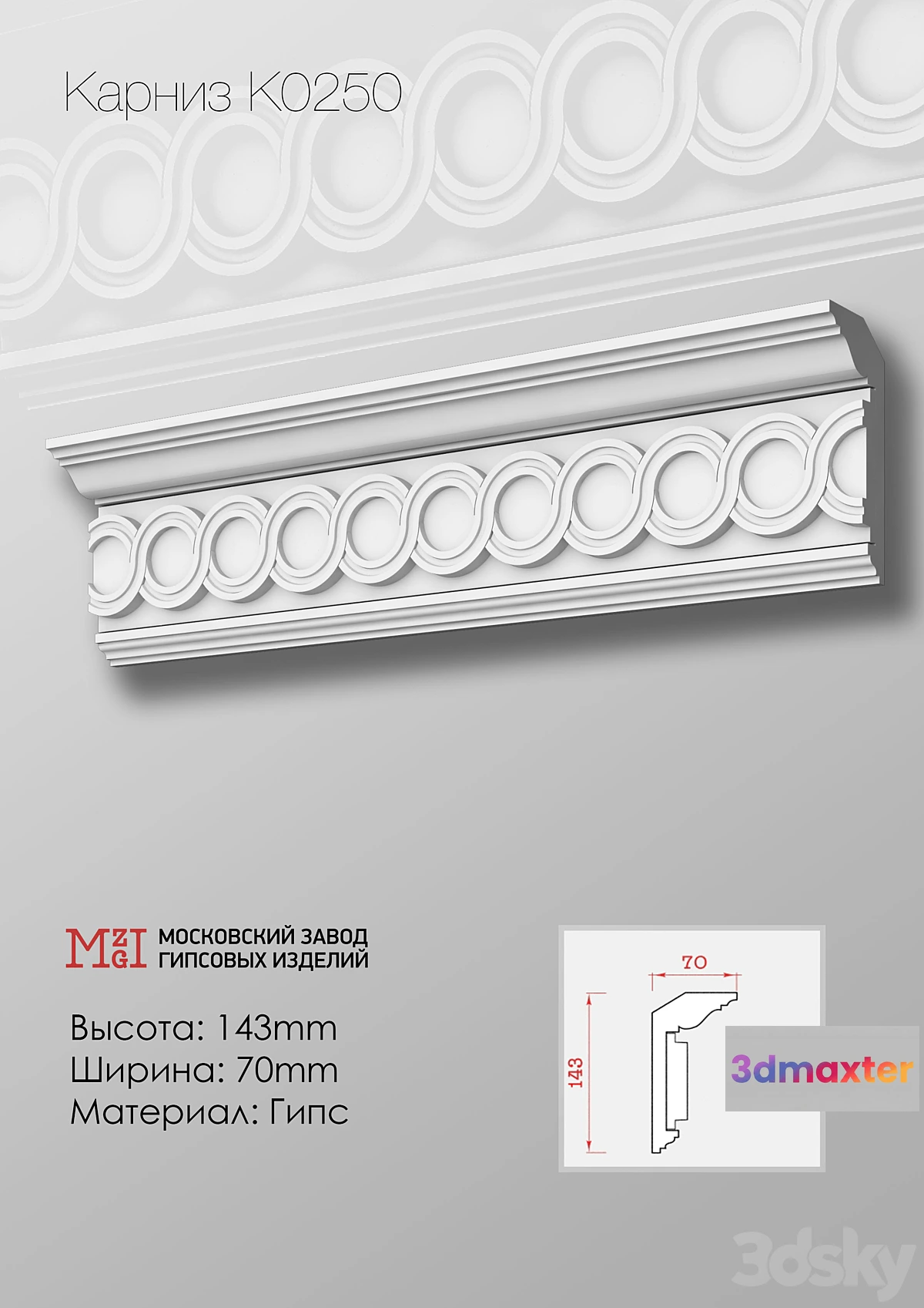 Cornices patterned plaster moldings K0250.143Nx70mm 3D Max