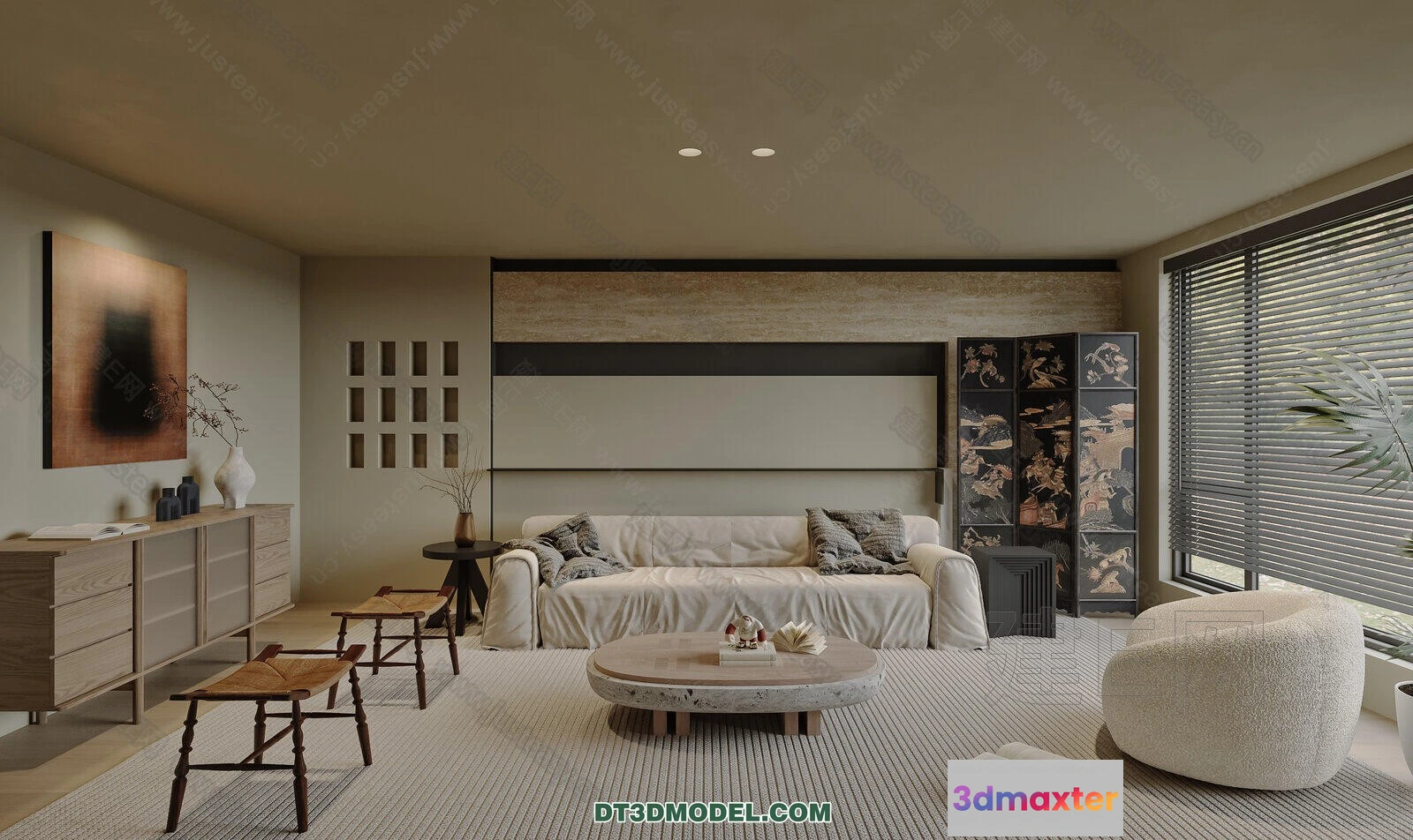 3D Models / 3D Scenes / Interior / Living Room / CORONA LIVING ROOM 3D MODELS – 047