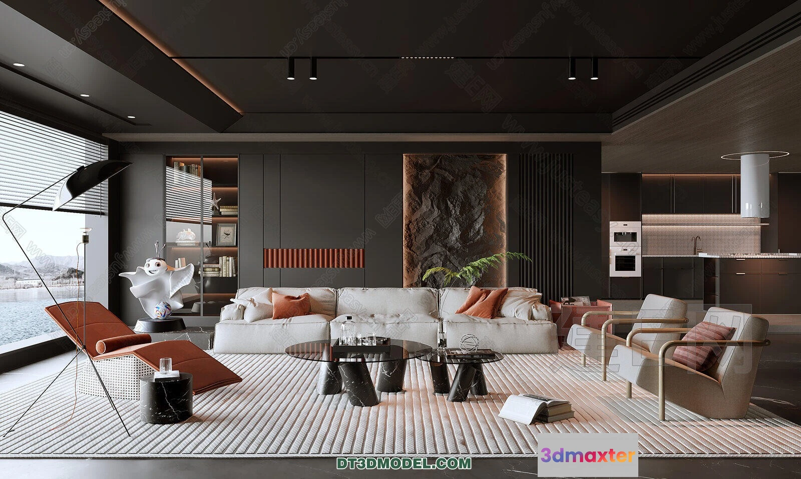 3D Models / 3D Scenes / Interior / Living Room / CORONA LIVING ROOM 3D MODELS – 081