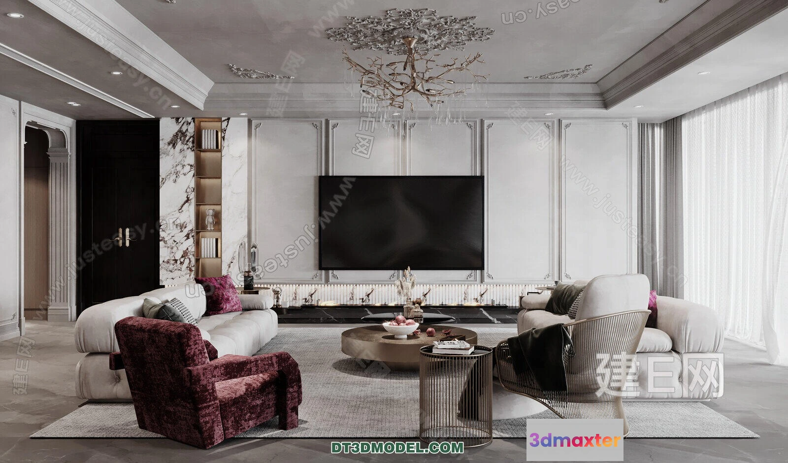 3D Models / 3D Scenes / Interior / Living Room / CORONA LIVING ROOM 3D MODELS – 096
