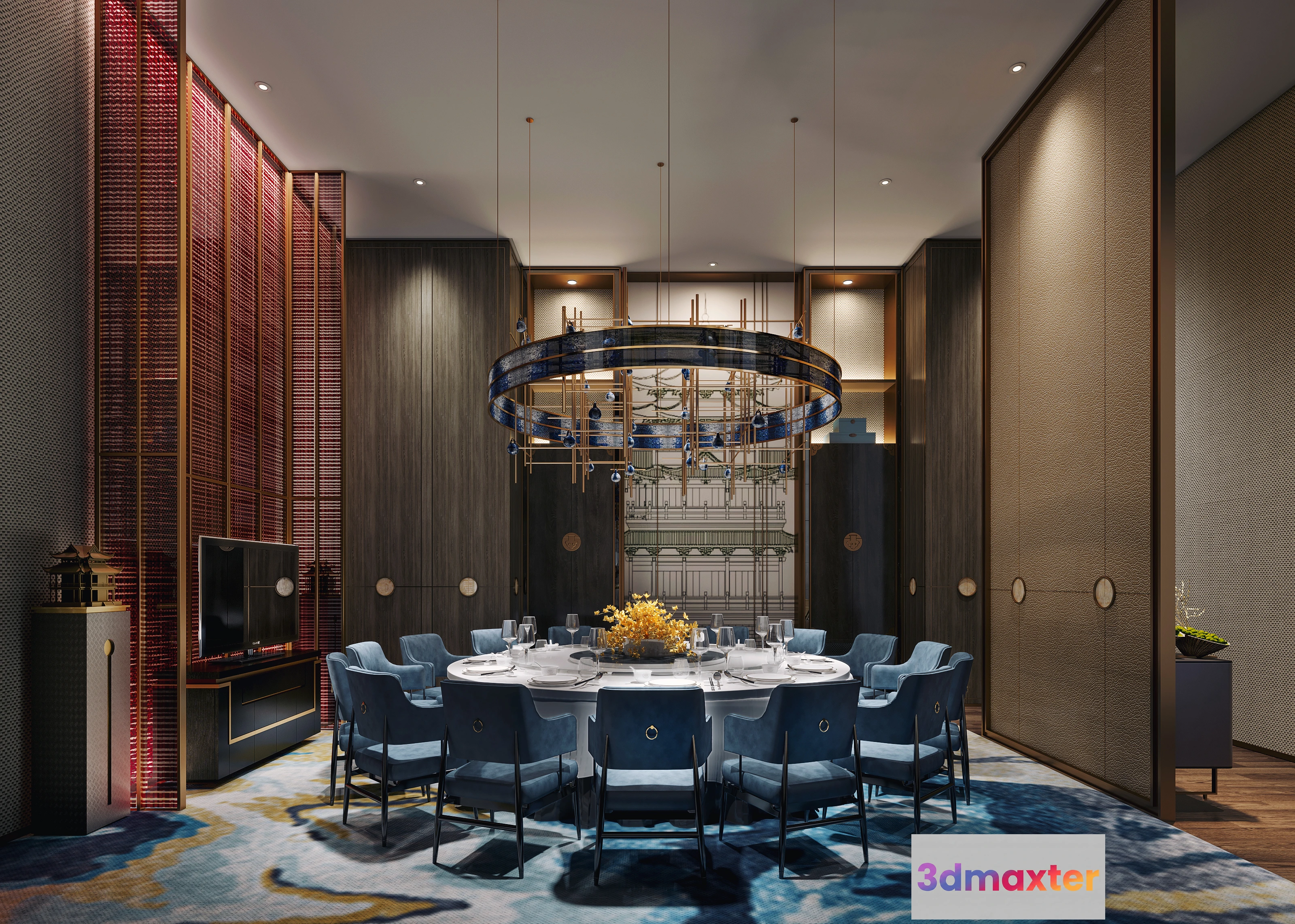 3D Models / 3D Scenes / Interior / Dining Room / CORONA SCENES – DINING ROOM – 3345