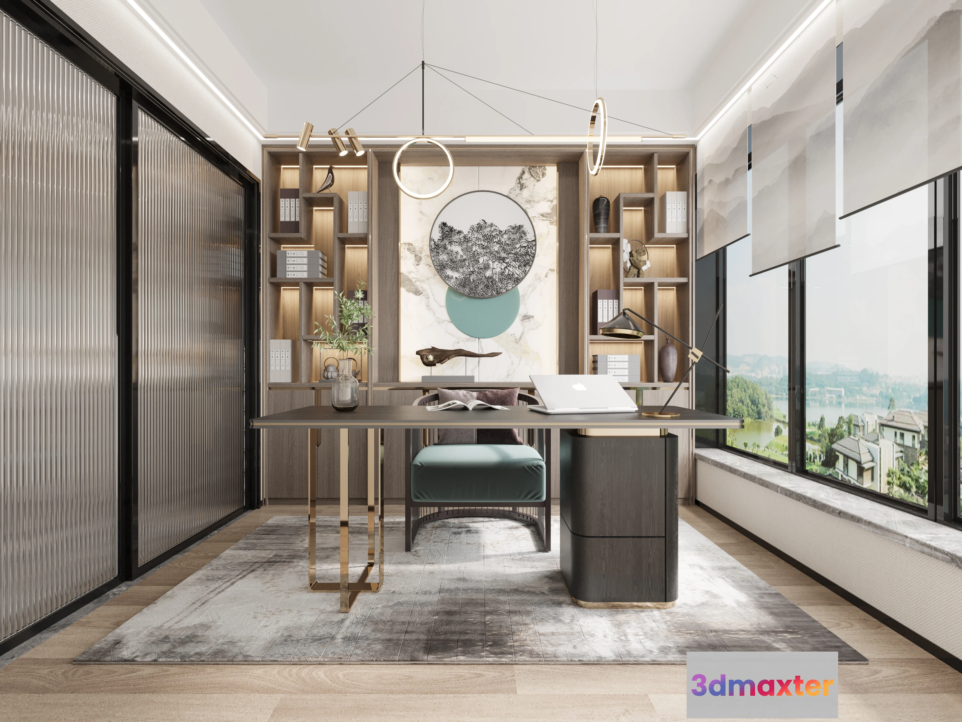 3D Models / 3D Scenes / Interior / Study Room / CORONA SCENES – STUDY ROOM – 3915