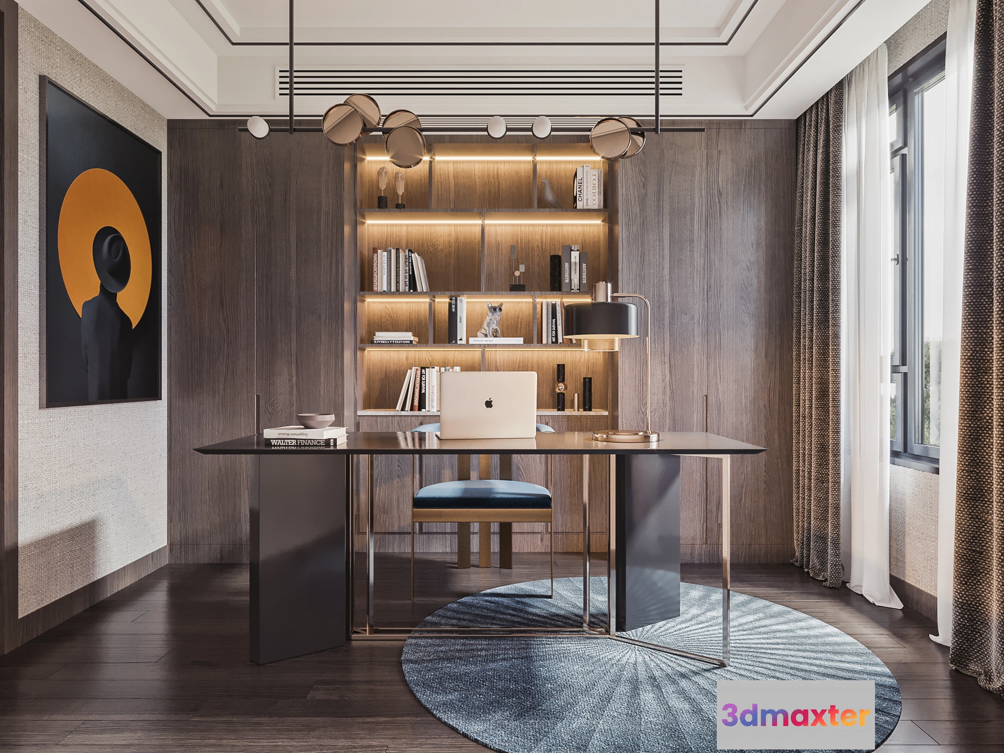 3D Models / 3D Scenes / Interior / Study Room / CORONA SCENES – STUDY ROOM – 3934