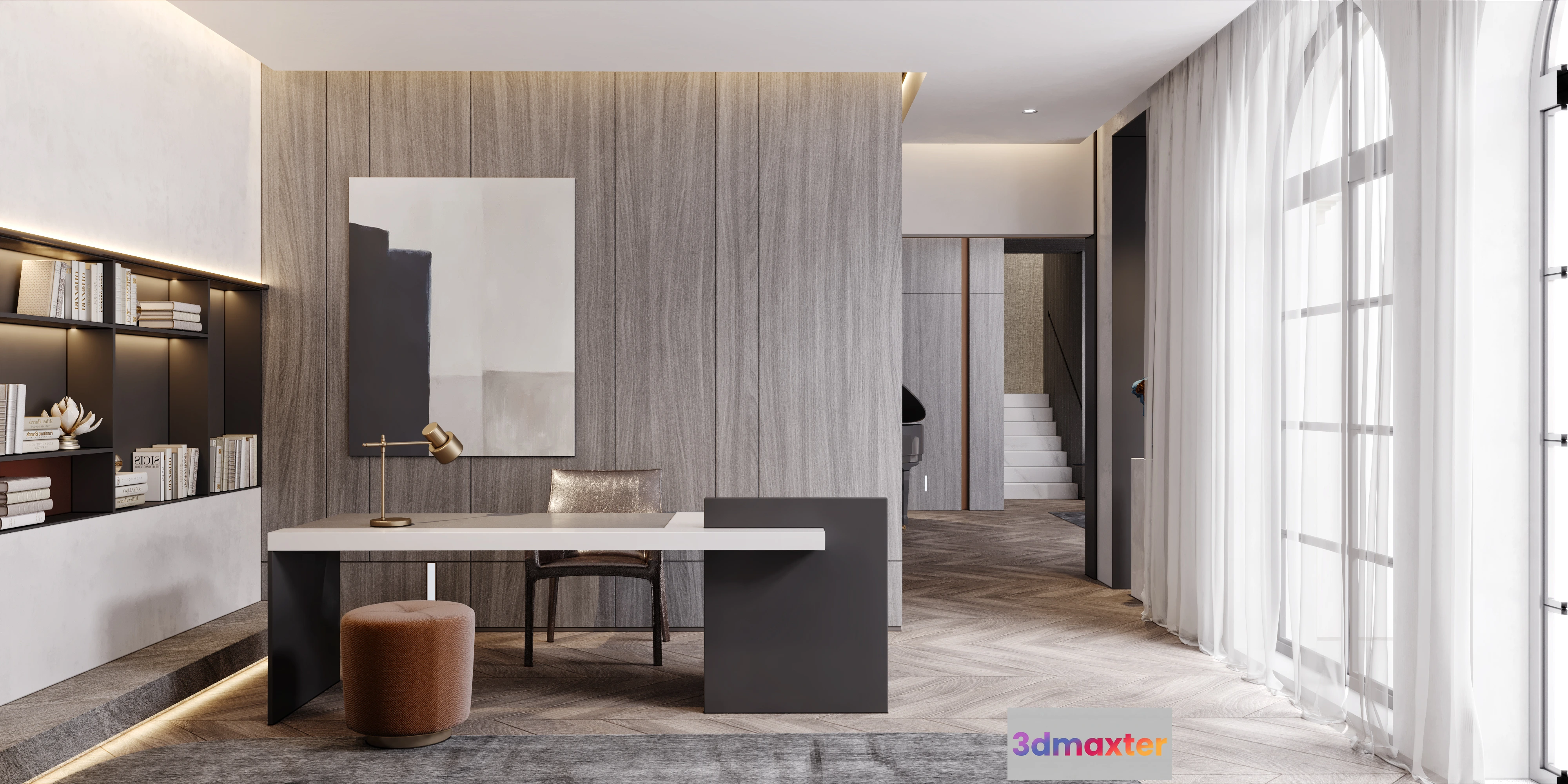 3D Models / 3D Scenes / Interior / Study Room / CORONA SCENES – STUDY ROOM – 3936