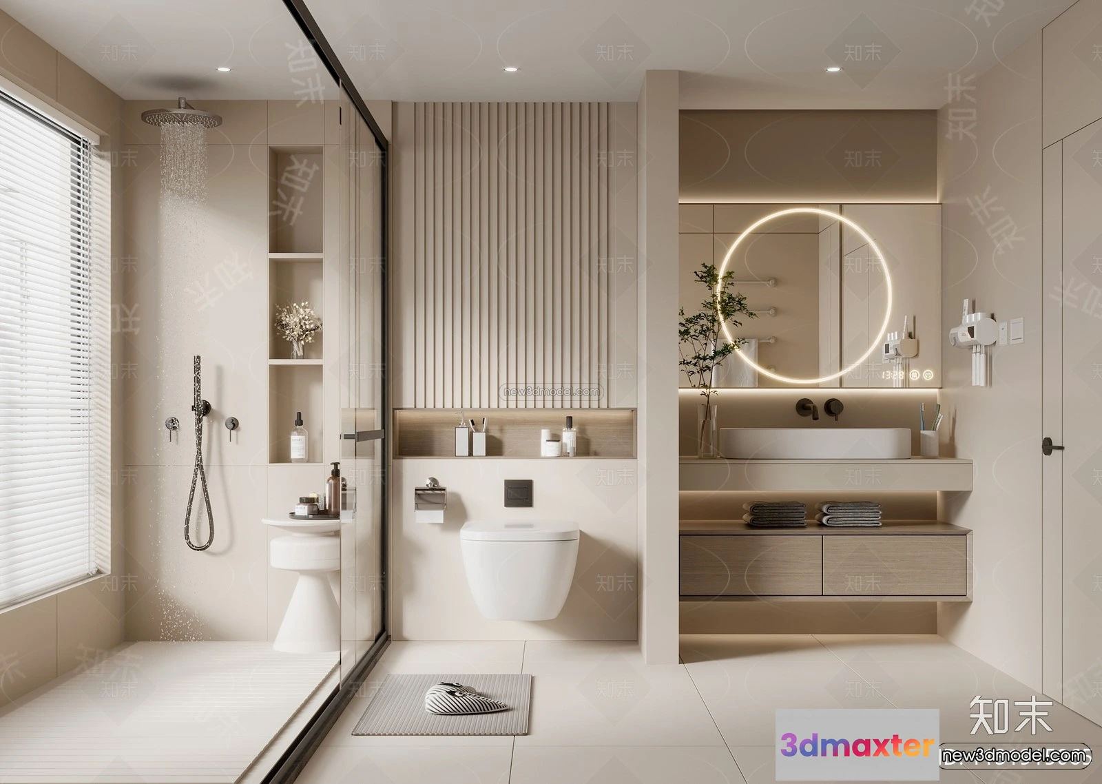 Cream Style Interior 3D Blocks – Bathroom 3D Model – 269 – Bathroom 3D Model – VRAY