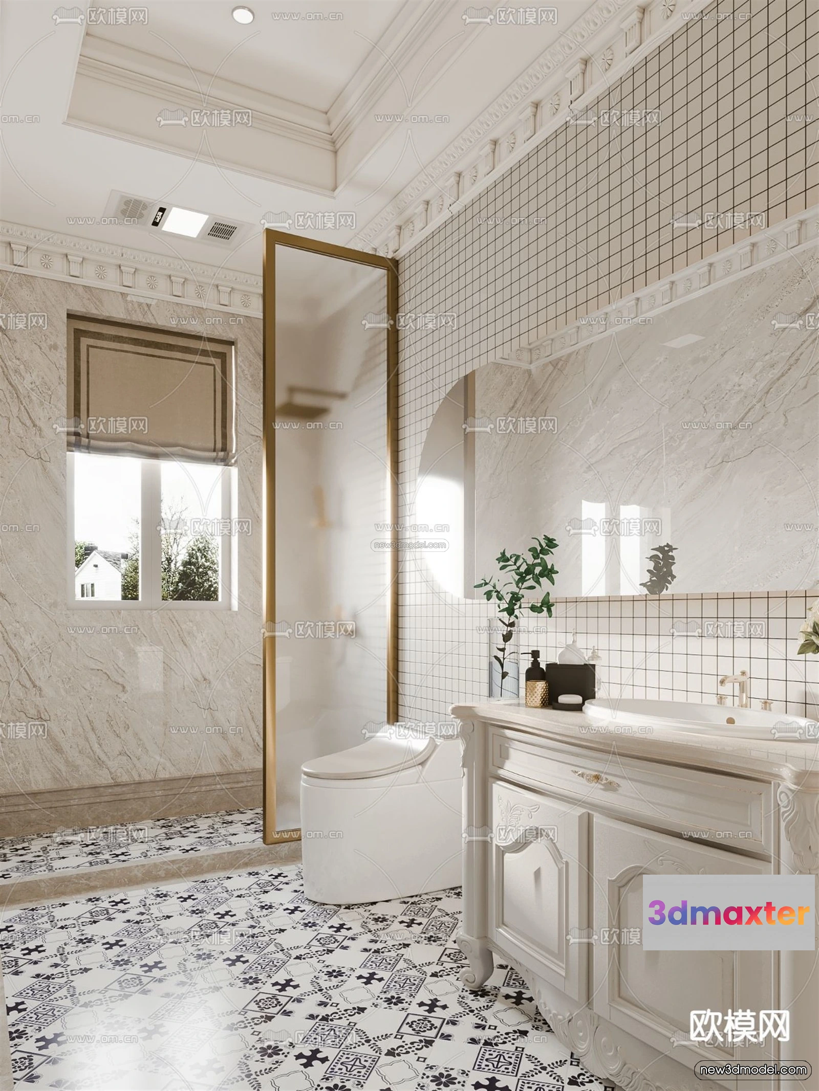 3D Models / 3D Scenes / Interior / Bathroom / Cream Style Interior 3D Blocks – Bathroom 3D Model – 273 3D Max