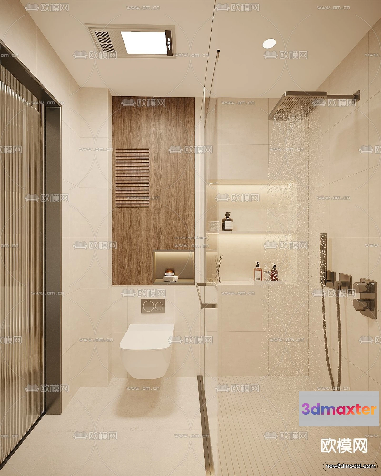 3D Models / 3D Scenes / Interior / Bathroom / Cream Style Interior 3D Blocks – Bathroom 3D Model – 278 3D Max