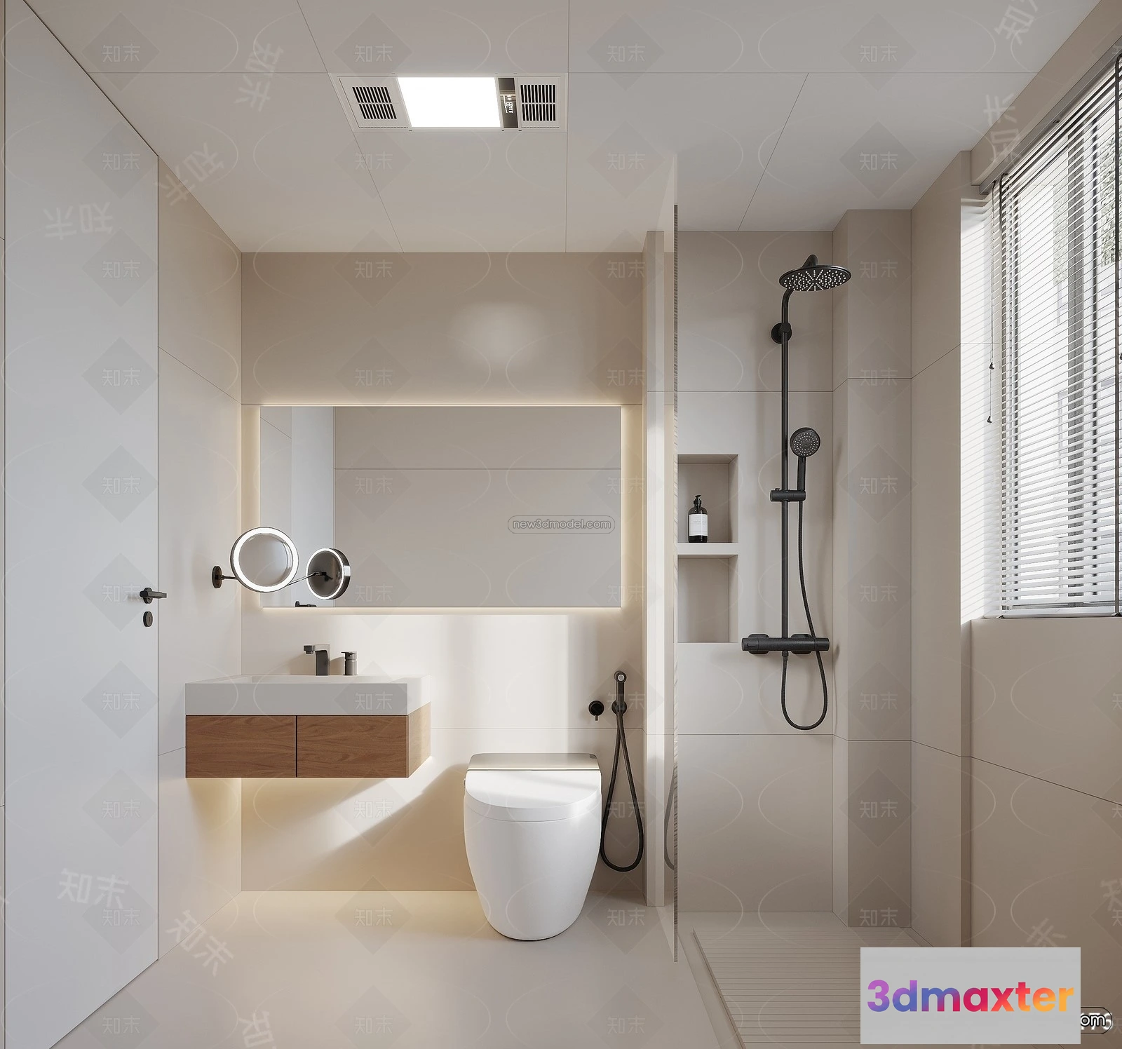 Cream Style Interior 3D Blocks – Bathroom 3D Model – 282 – Bathroom 3D Model – VRAY