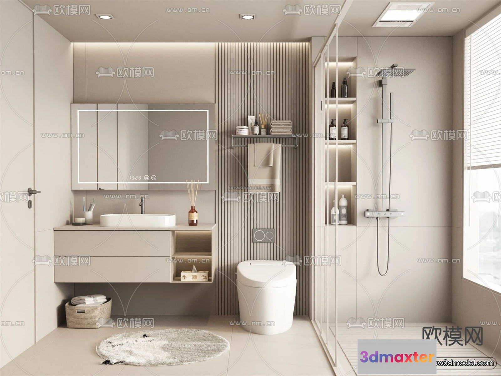 Cream Style Interior 3D Blocks – Bathroom 3D Model – 285 – Bathroom 3D Model – VRAY